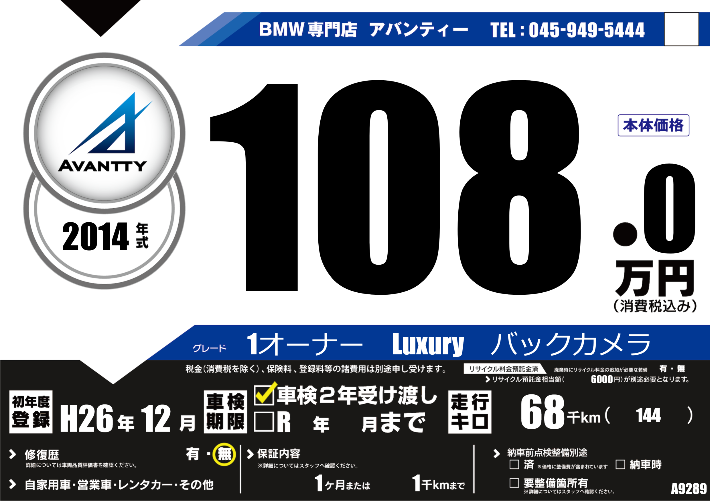 | 走行キロ | 6.8万km | 初年度登録 | H26年12月 |