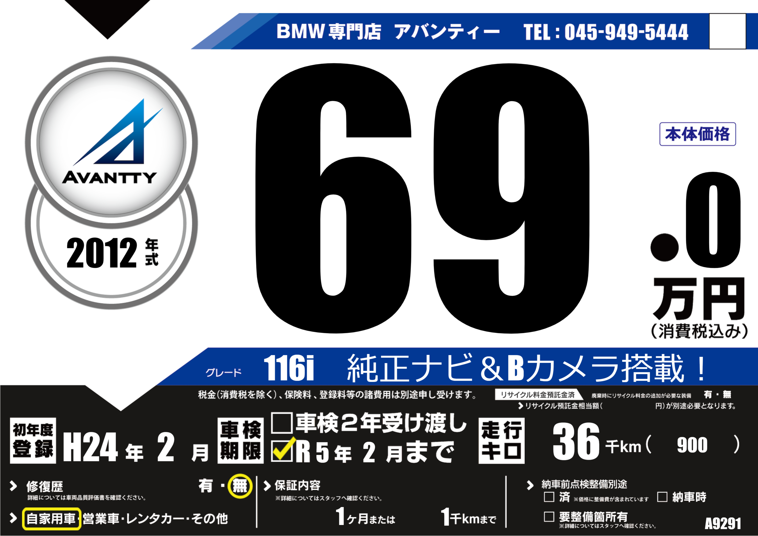 | 走行キロ | 3.6万km | 初年度登録 | H24年2月 |