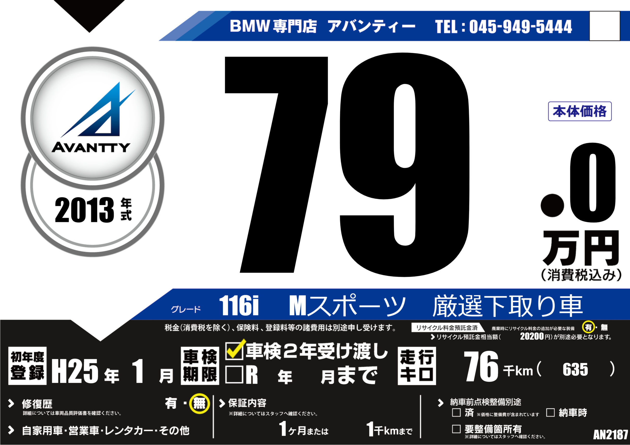 | 走行キロ | 7.6万km | 初年度登録 | H25年1月 |