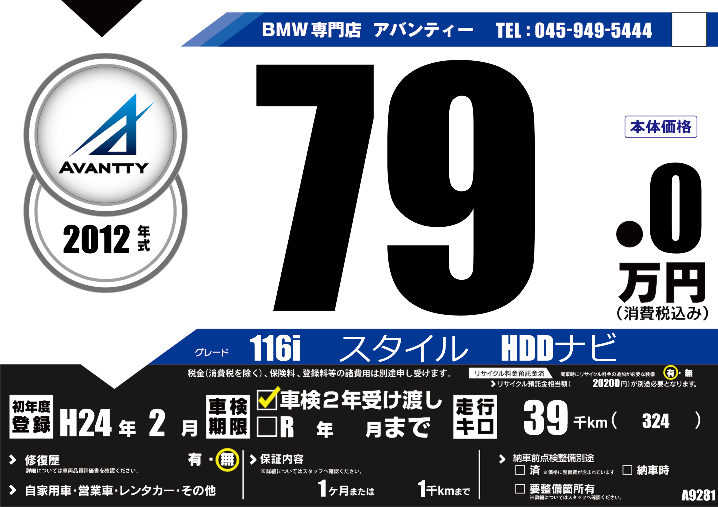 116i スタイル HDDナビ |