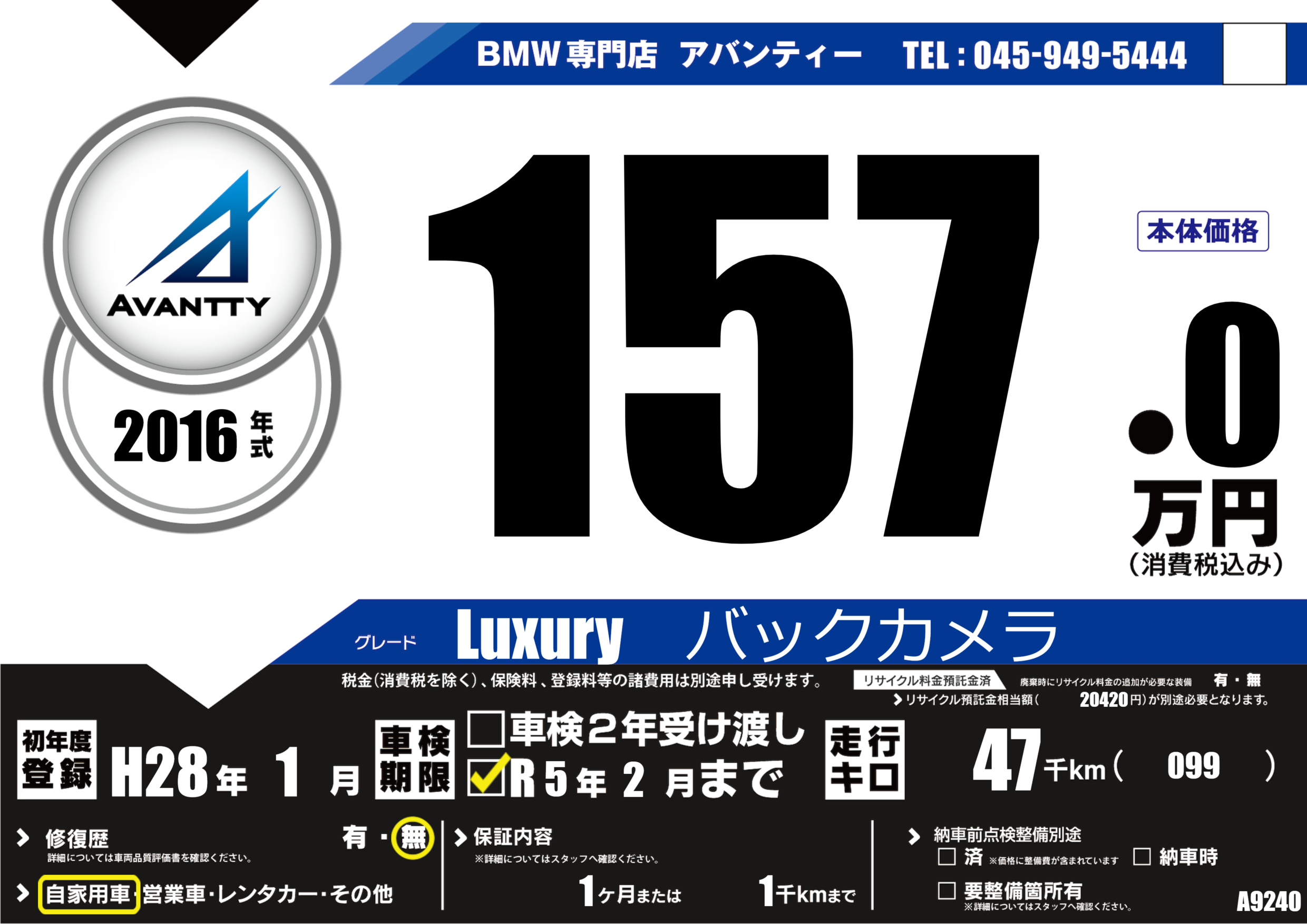 | 車検制限 | - 年 - 月 - 日 | ||