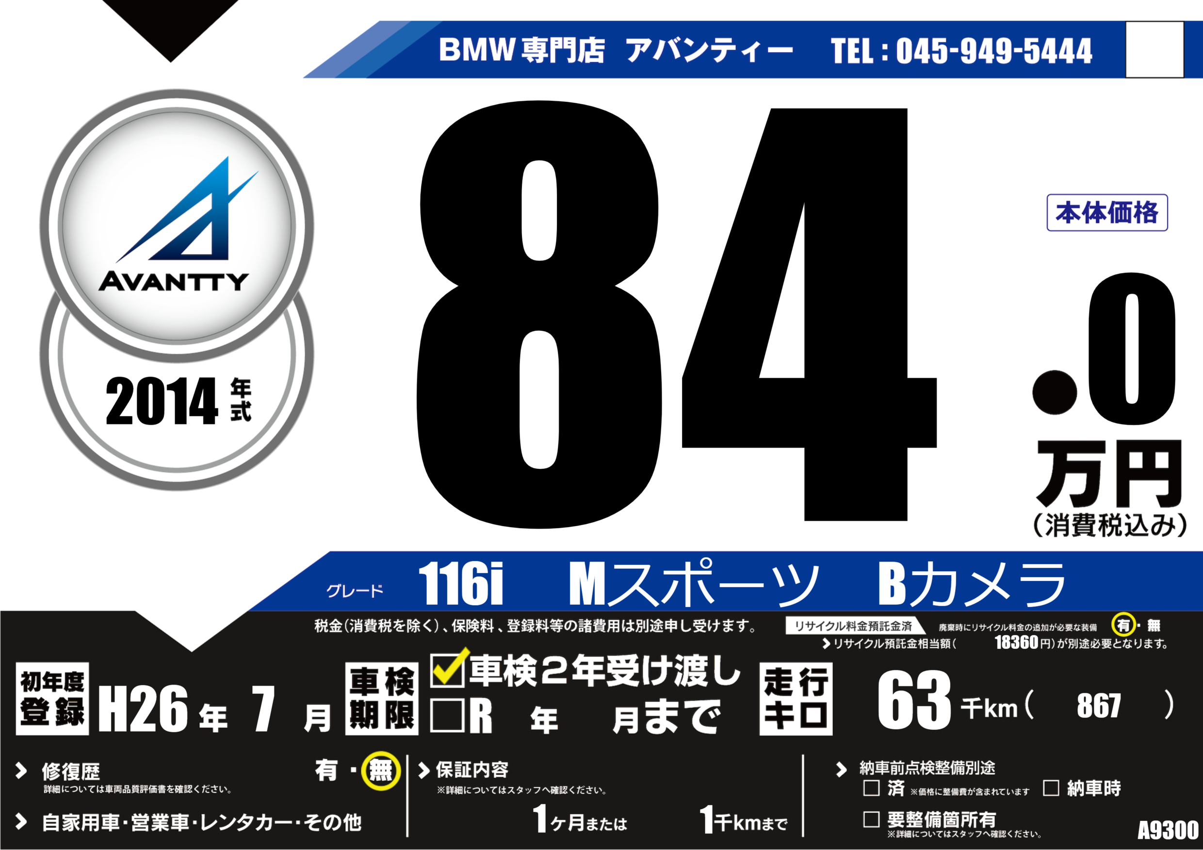 | 走行キロ | 6.3万km | 初年度登録 | H26年7月 |