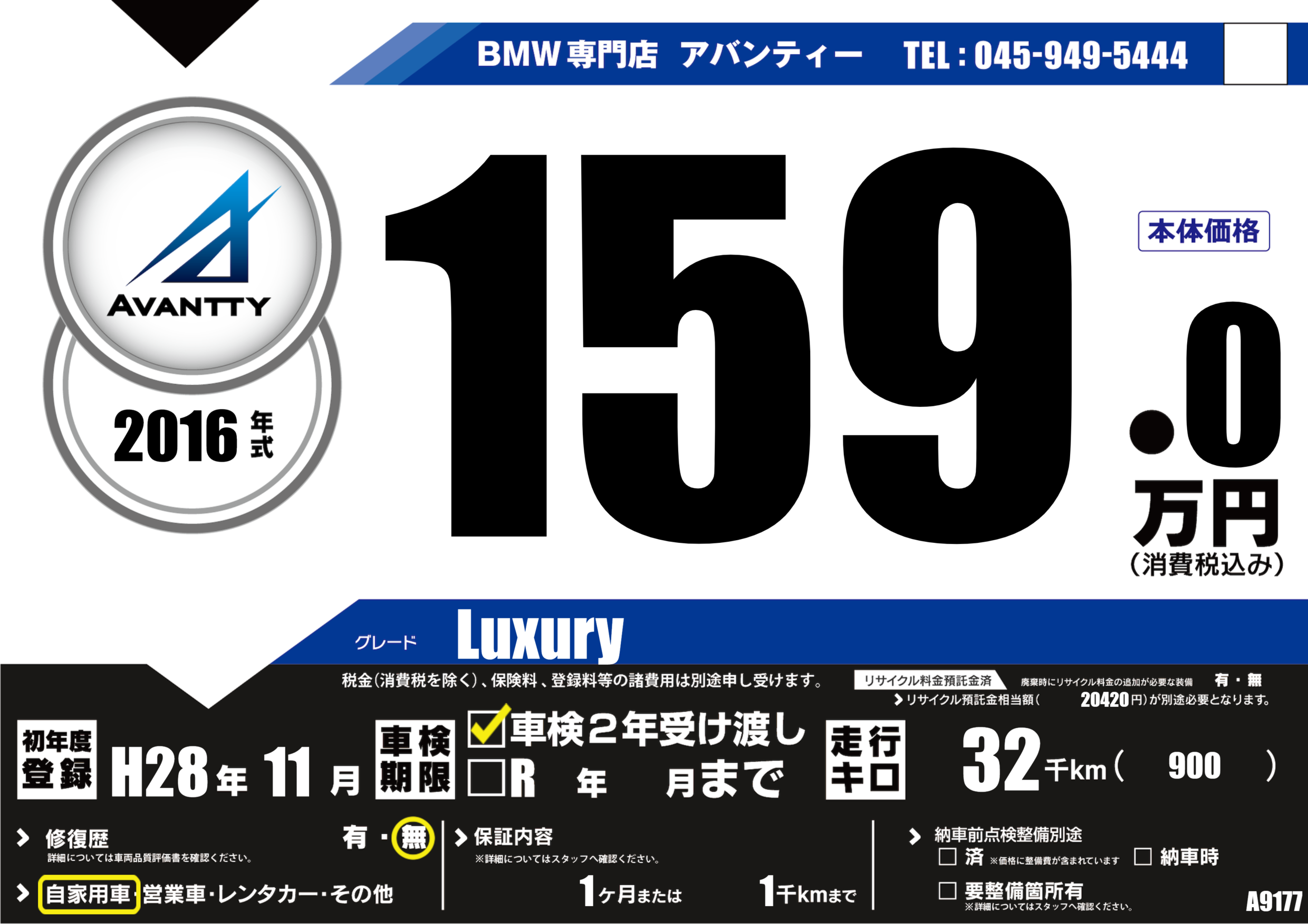 | 走行キロ | 3.2万km | 初年度登録 | H28年11月 |