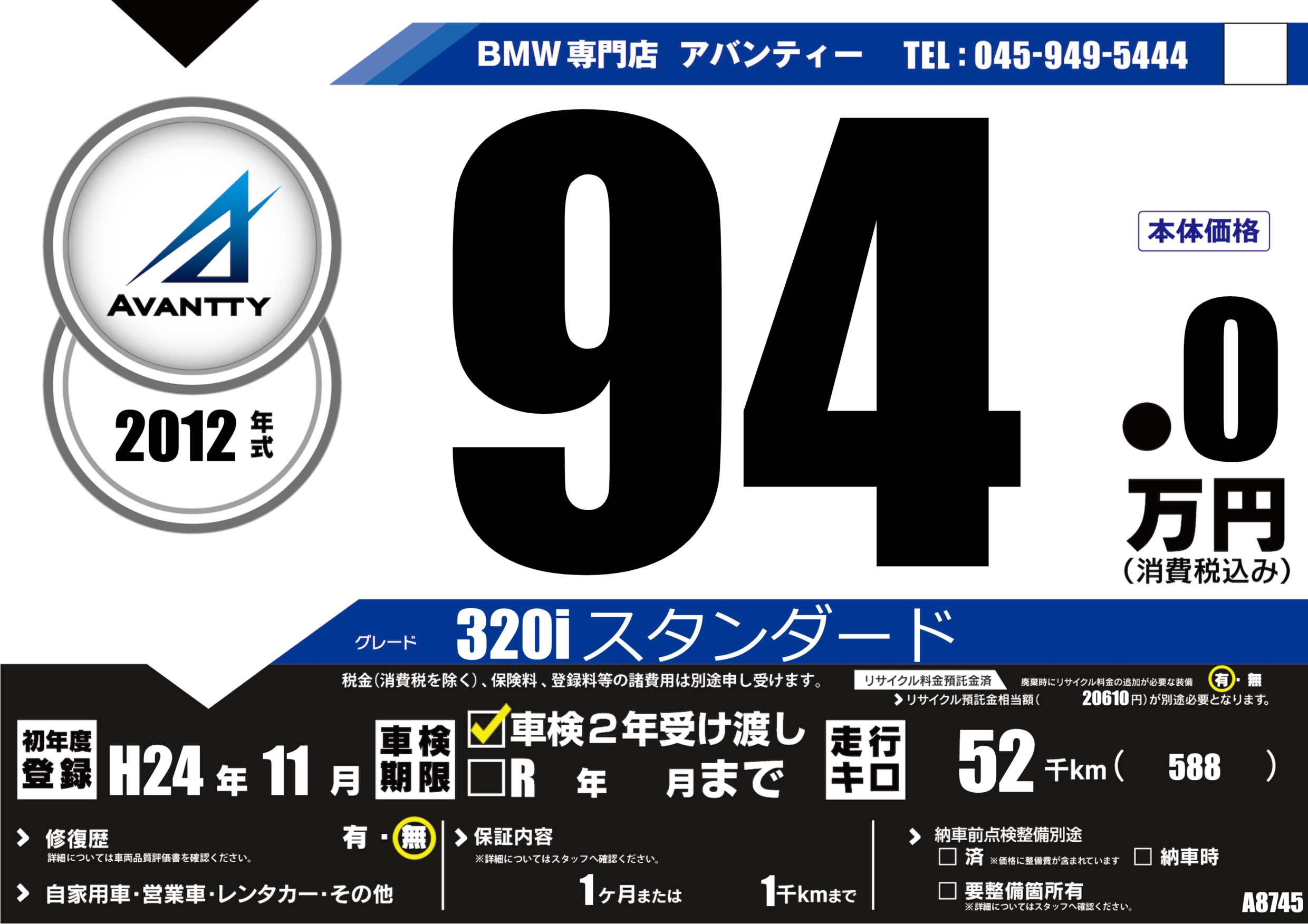 | 走行キロ | 5.2万km | 初年度登録 | H24年11月 |