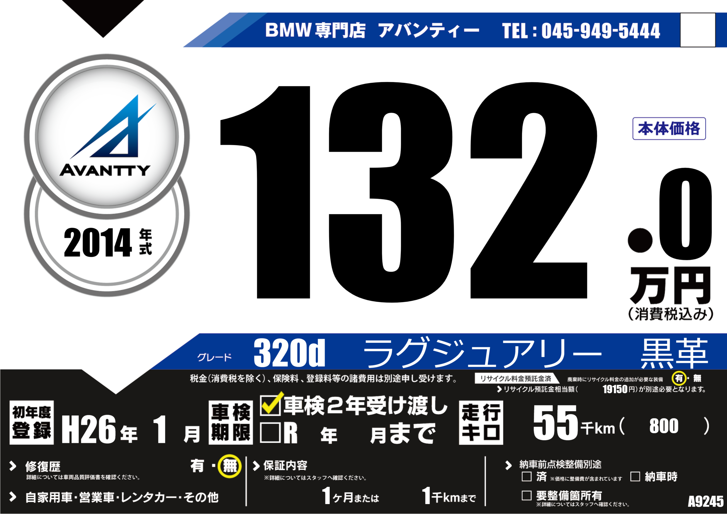 | 走行キロ | 5.5万km | 初年度登録 | H26年1月 |