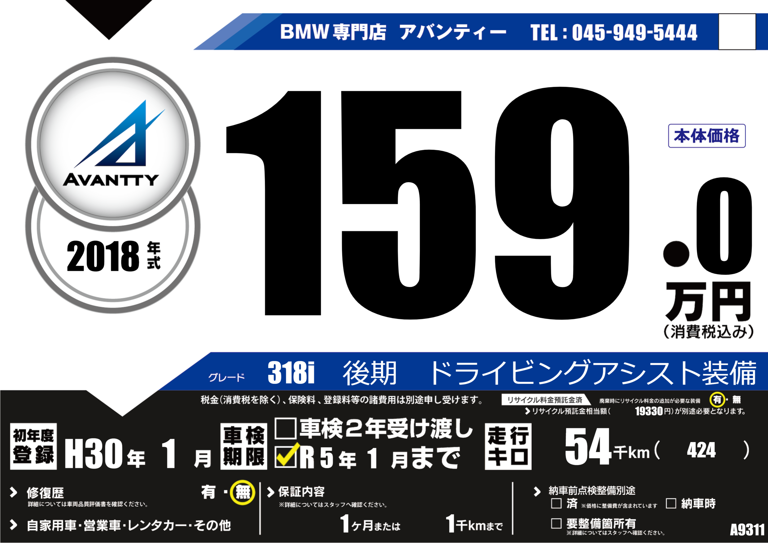 | 走行キロ | 5.4万km | 初年度登録 | H30年1月 |