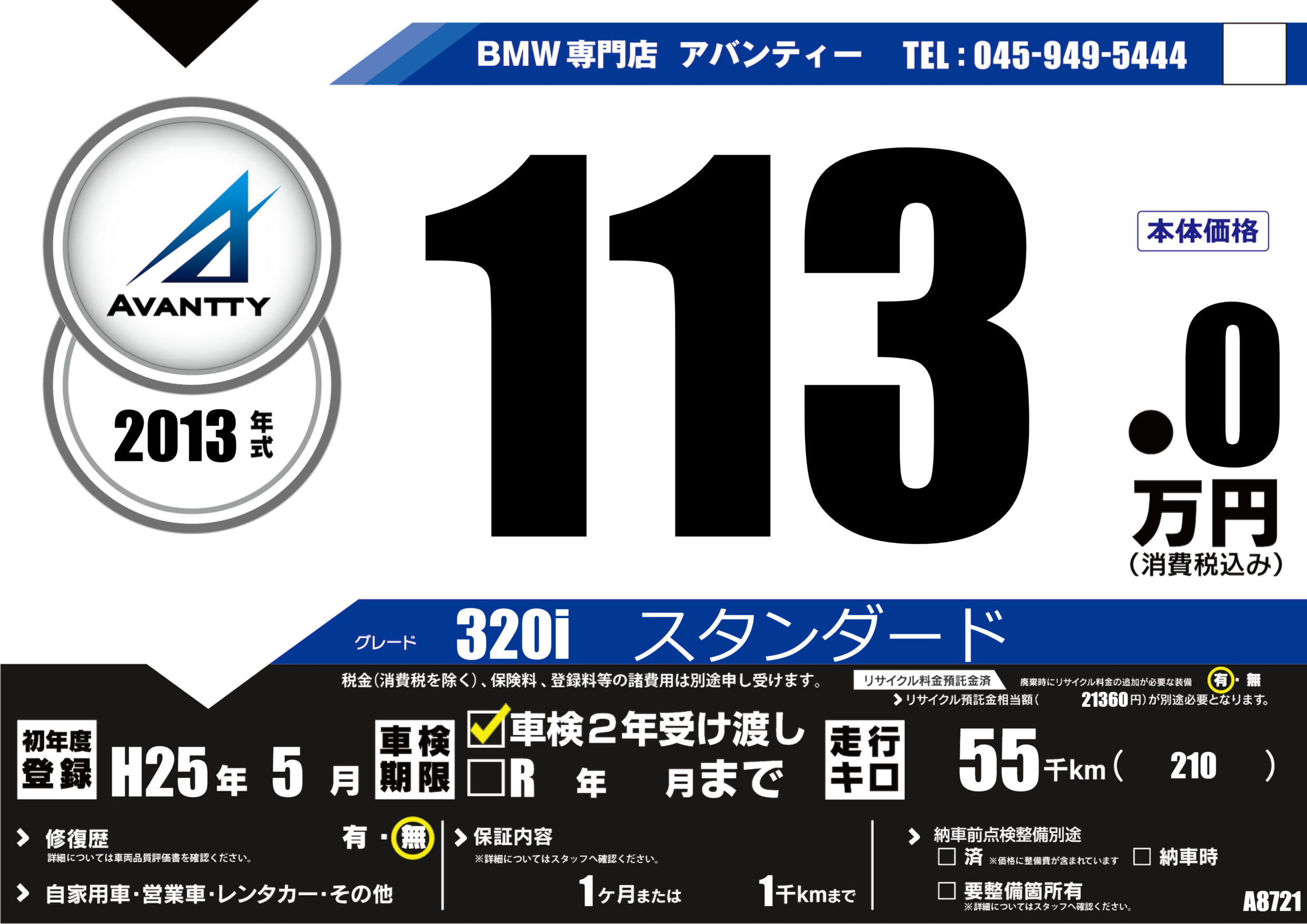| 走行キロ | 5.5万km | 初年度登録 | H25年5月 |