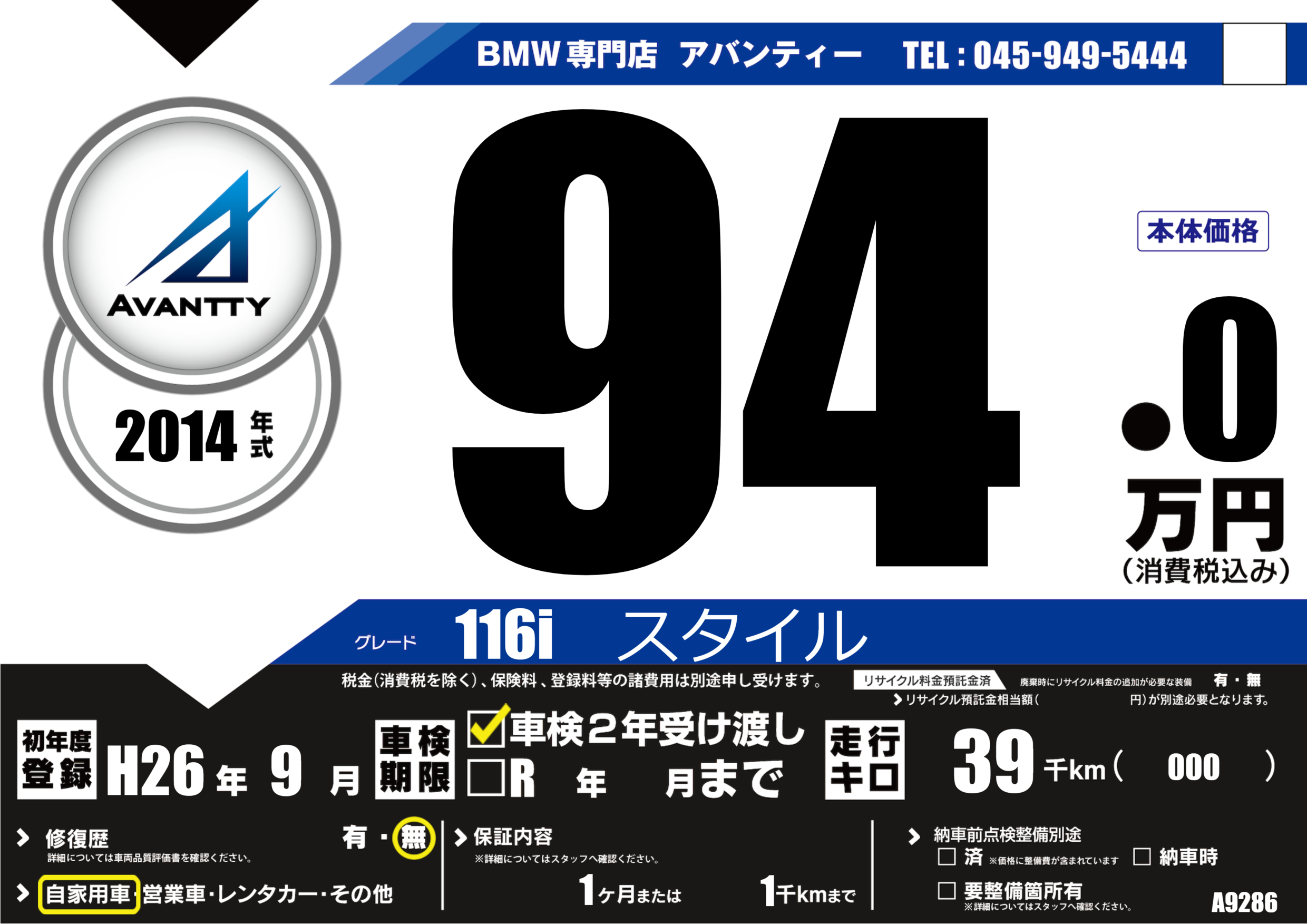 | 走行キロ | 3.9万km | 初年度登録 | H26年9月 |