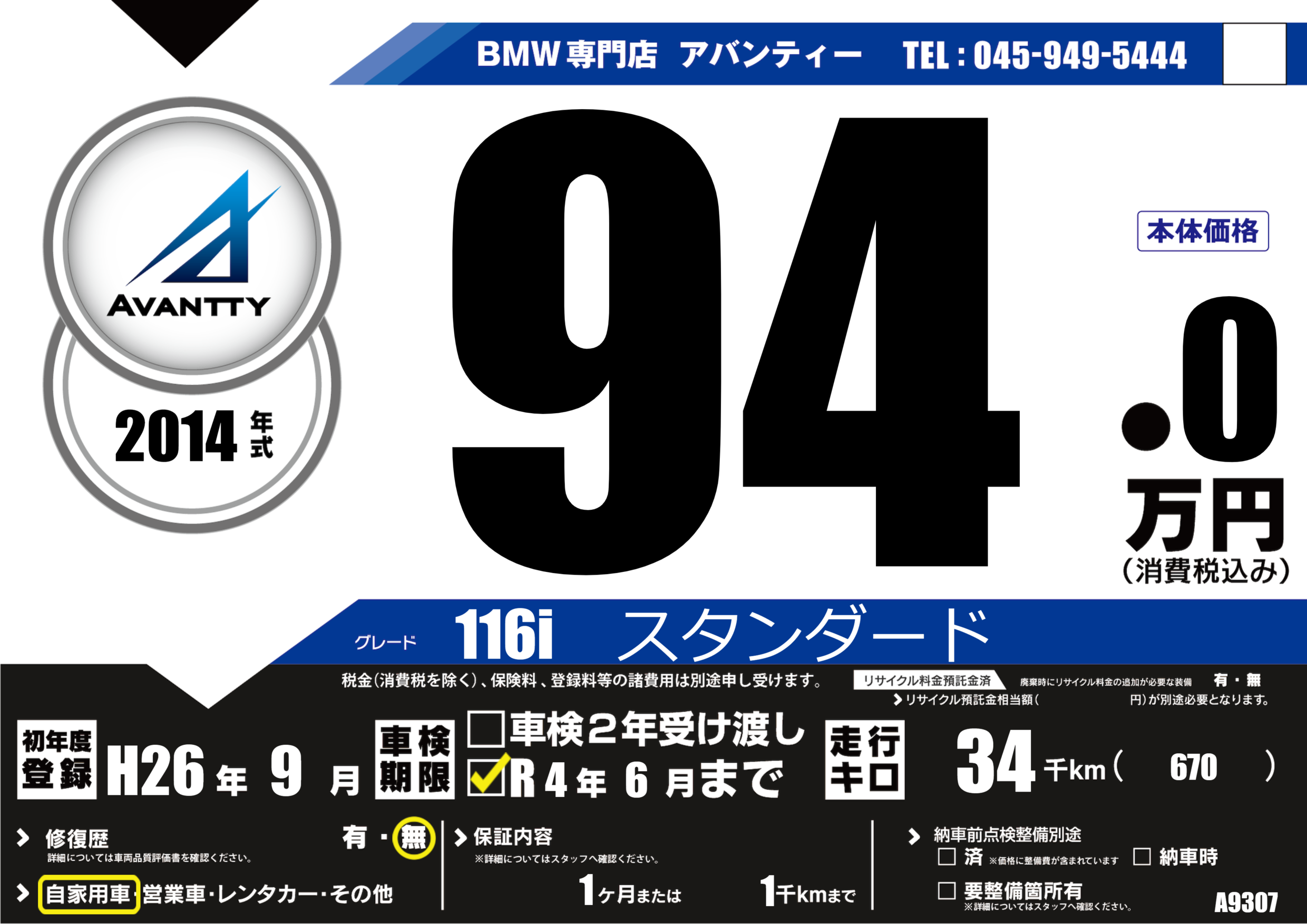 | 走行キロ | 3.4万km | 初年度登録 | H26年9月 |