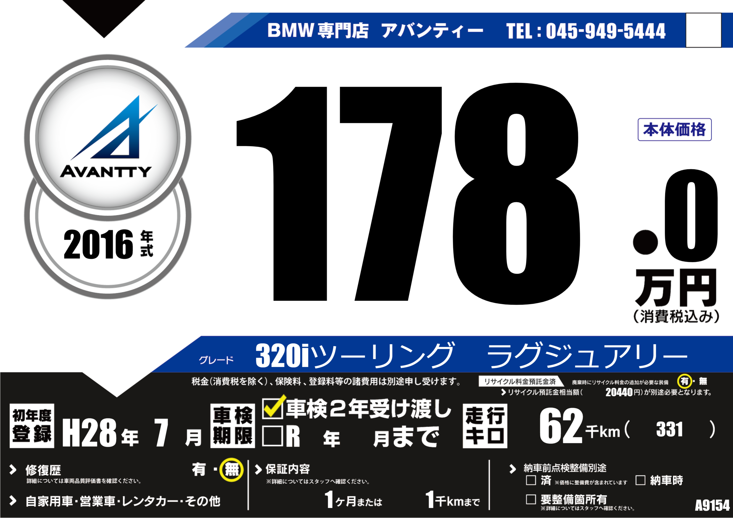 | 走行キロ | 6.2万km | 初年度登録 | H28年7月 |