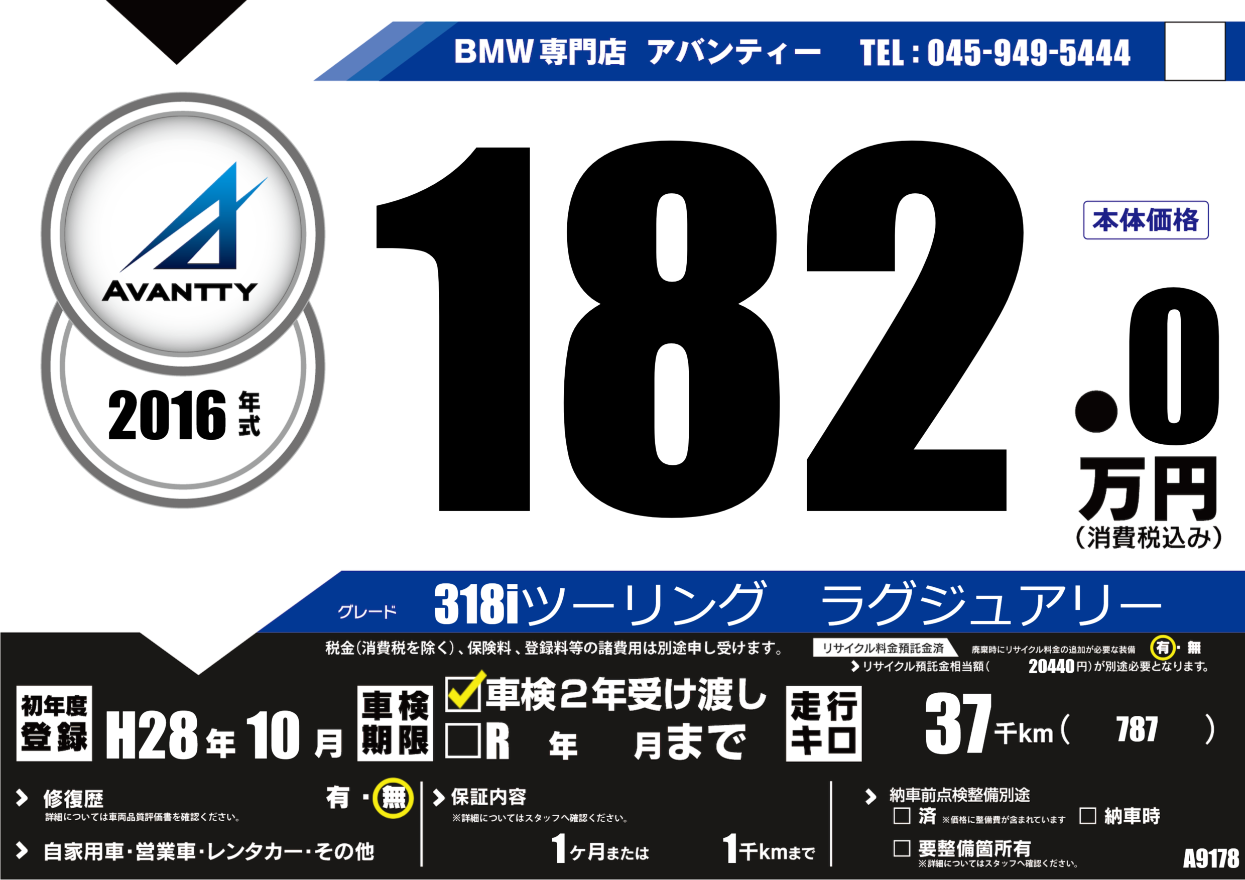 | 走行キロ | 3.7万km | 初年度登録 | H28年10月 |
