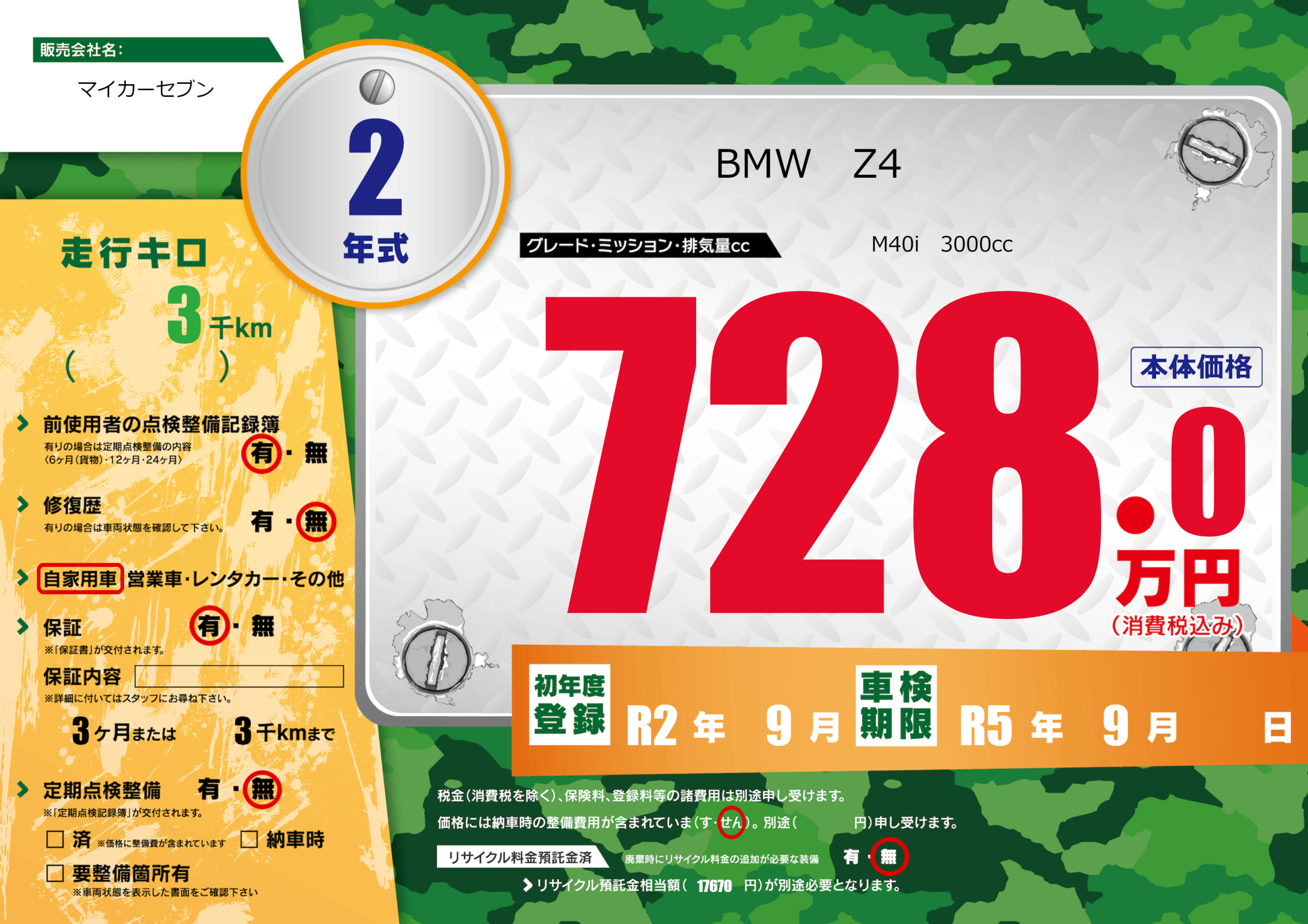 なし | 車検制限 | R5年9月---月 |