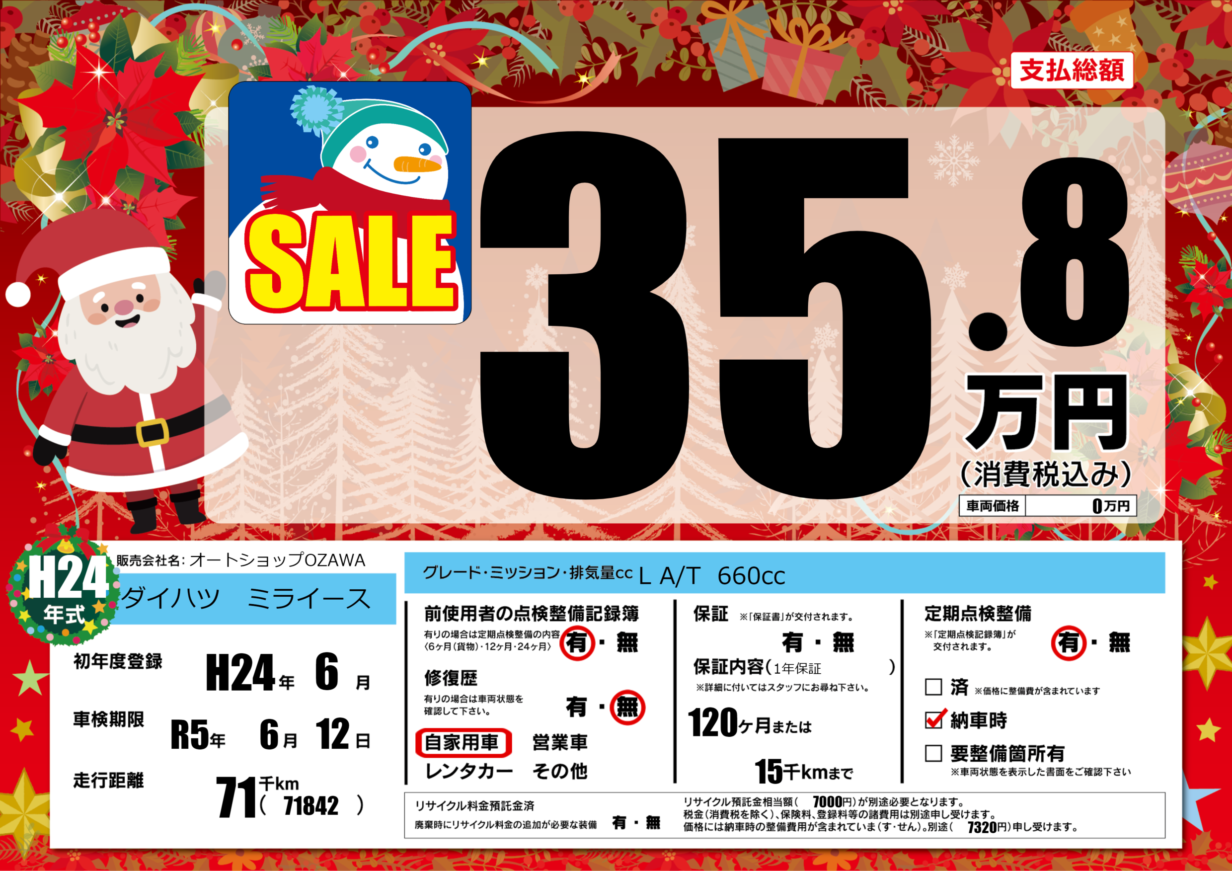 | 走行キロ | 7.1万km | 初年度登録 | H24年6月 |