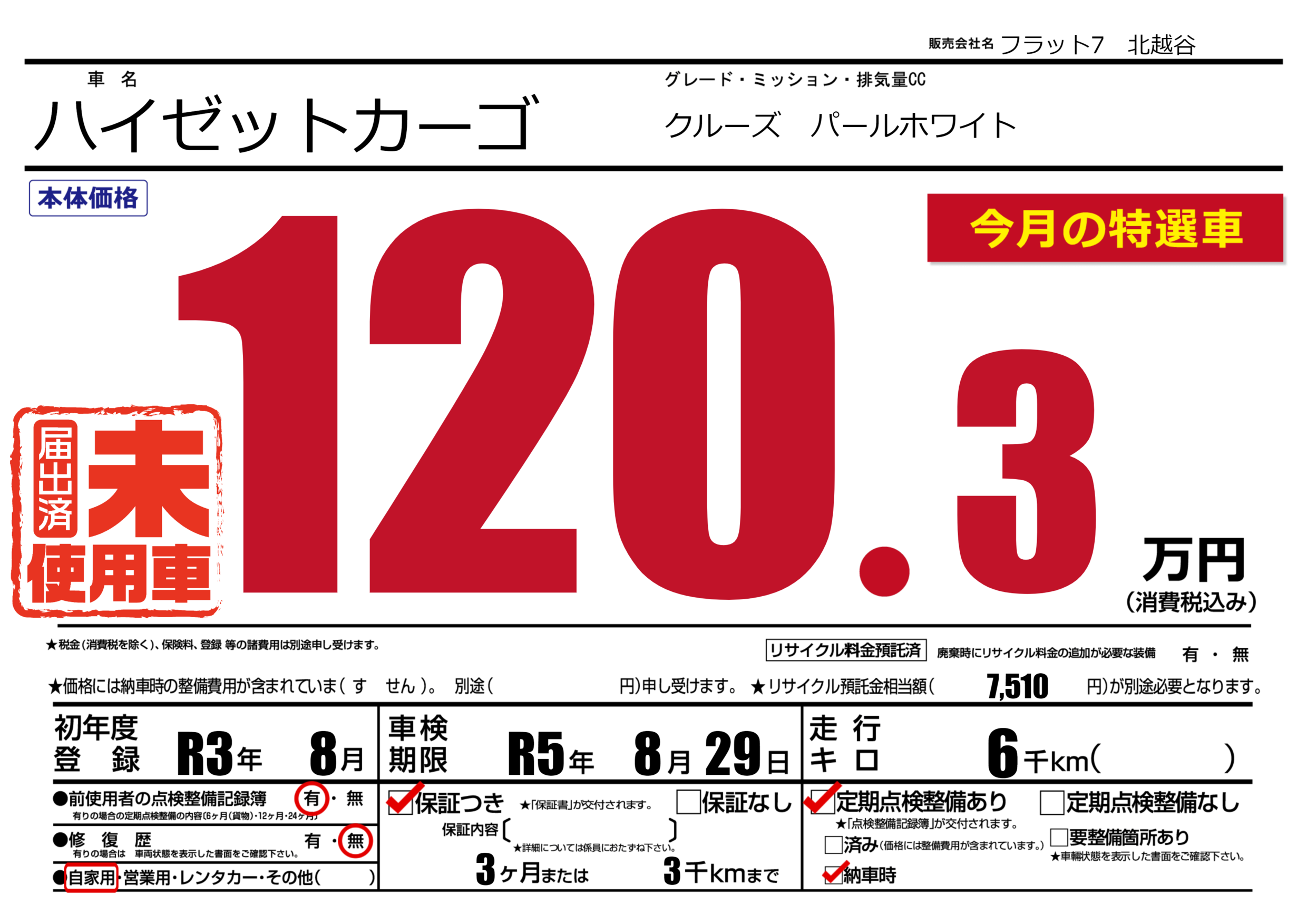 | 走行キロ | 0.6万km | 初年度登録 | R3年8月 |