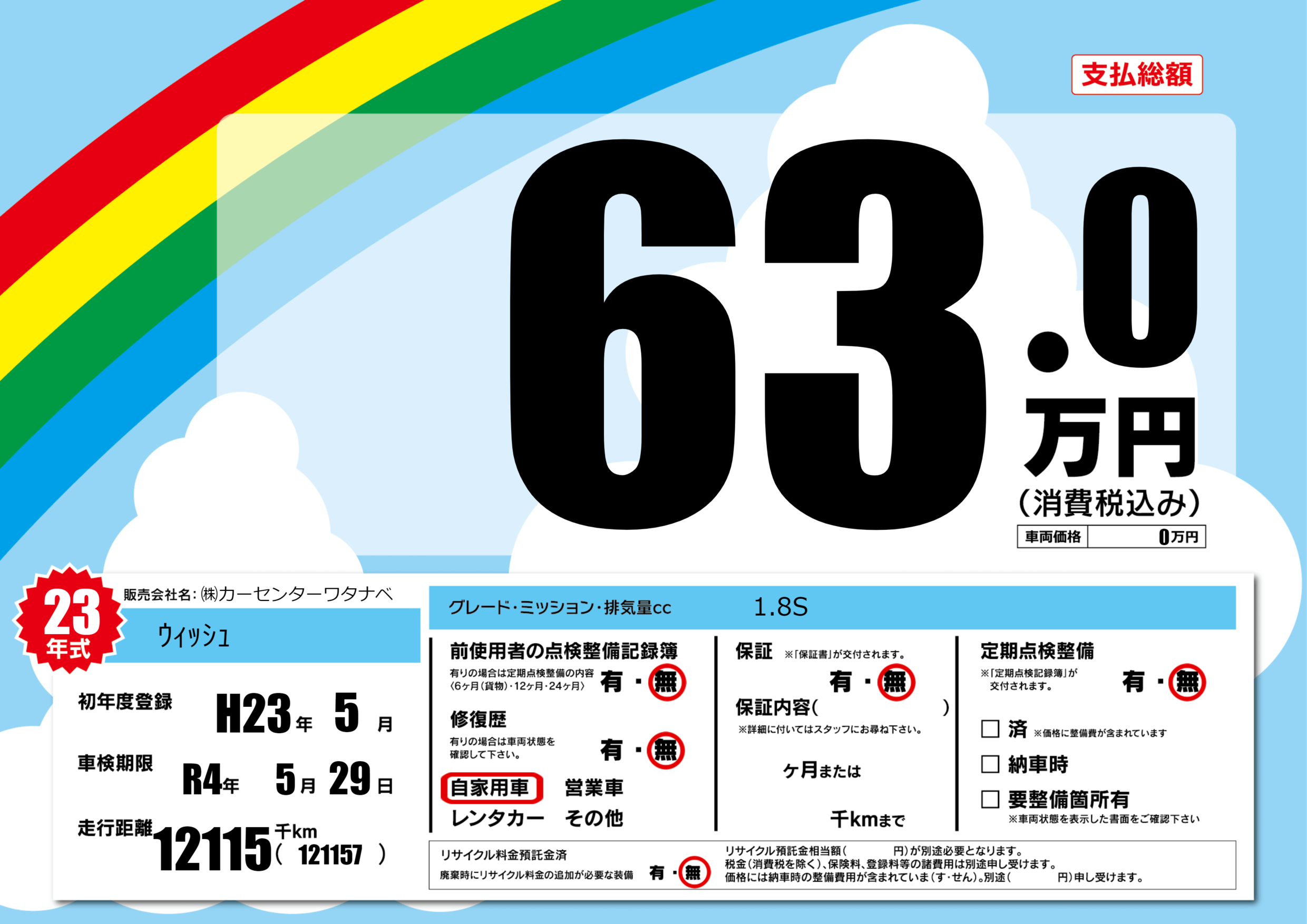 | 車名 | ウィッシュ | グレード ミッション 排気量 |