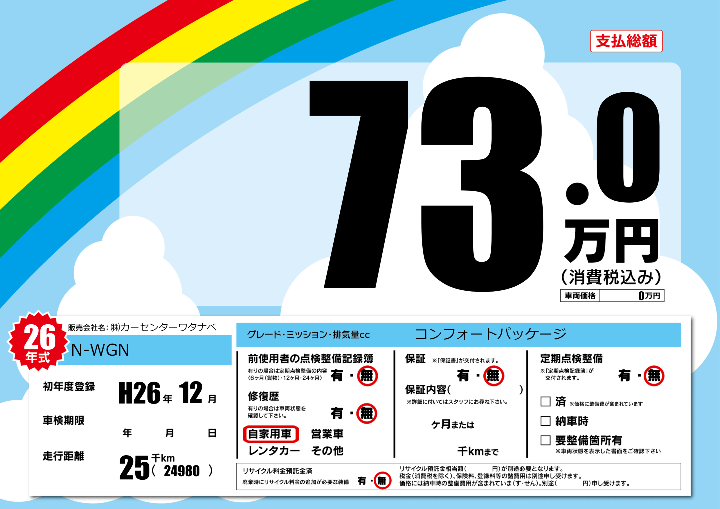 | 車名 | N-WGN | グレード ミッション 排気量 |