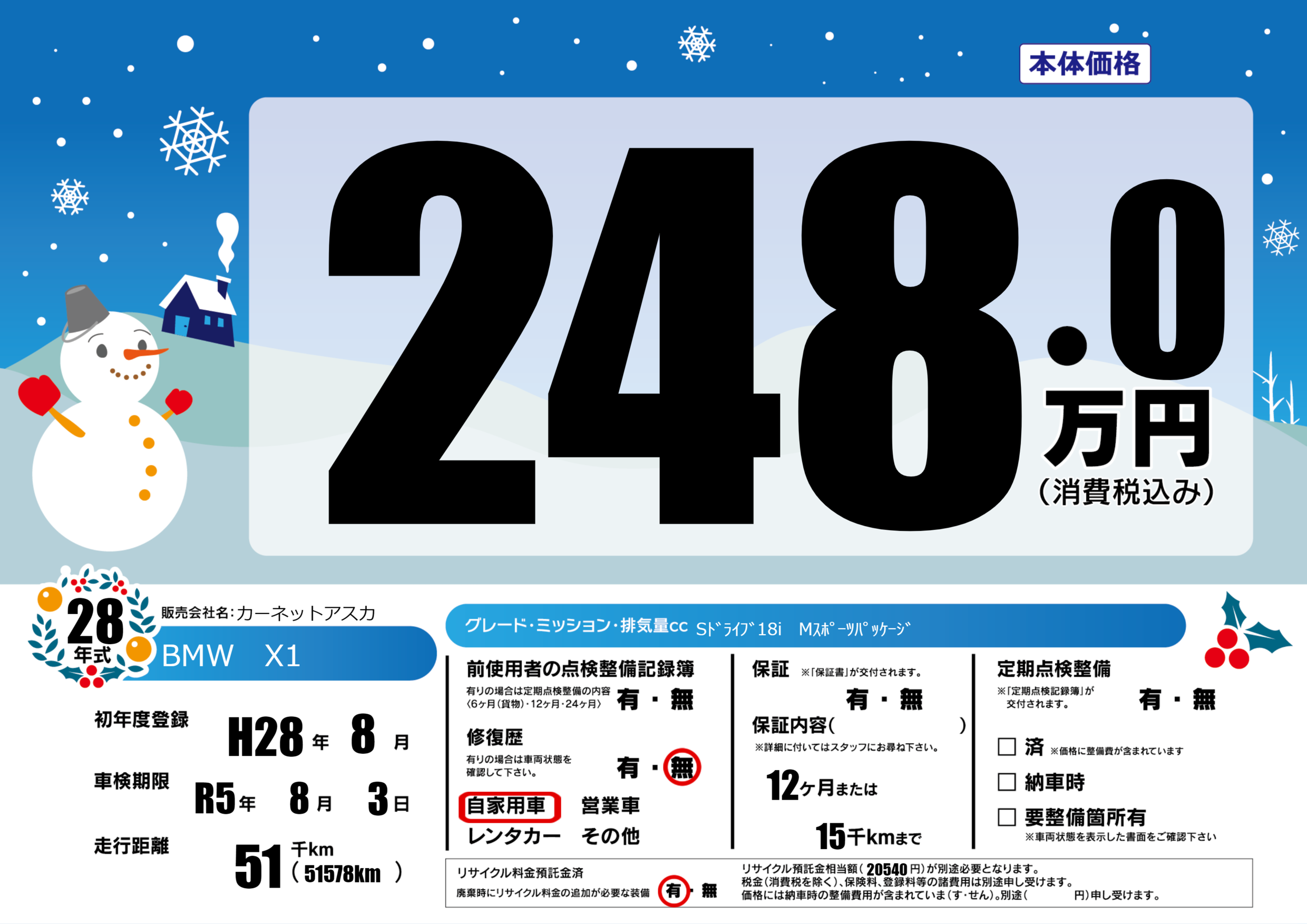 | 車名 | BMW X1 | グレード ミッション 排気量 |