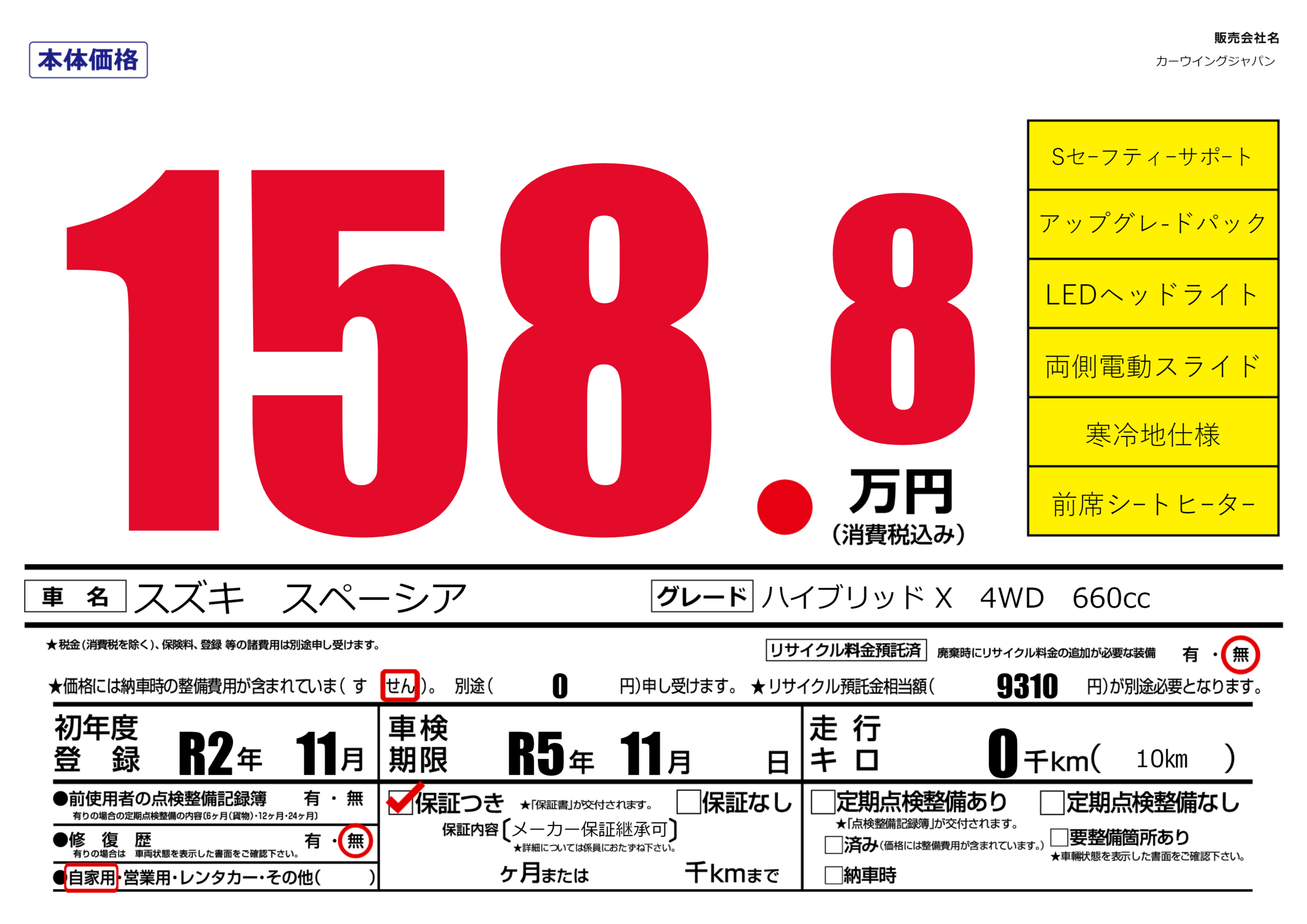 保証付き 保証内容(メーカー保証継承可) ---ヶ月または()千kmまで |