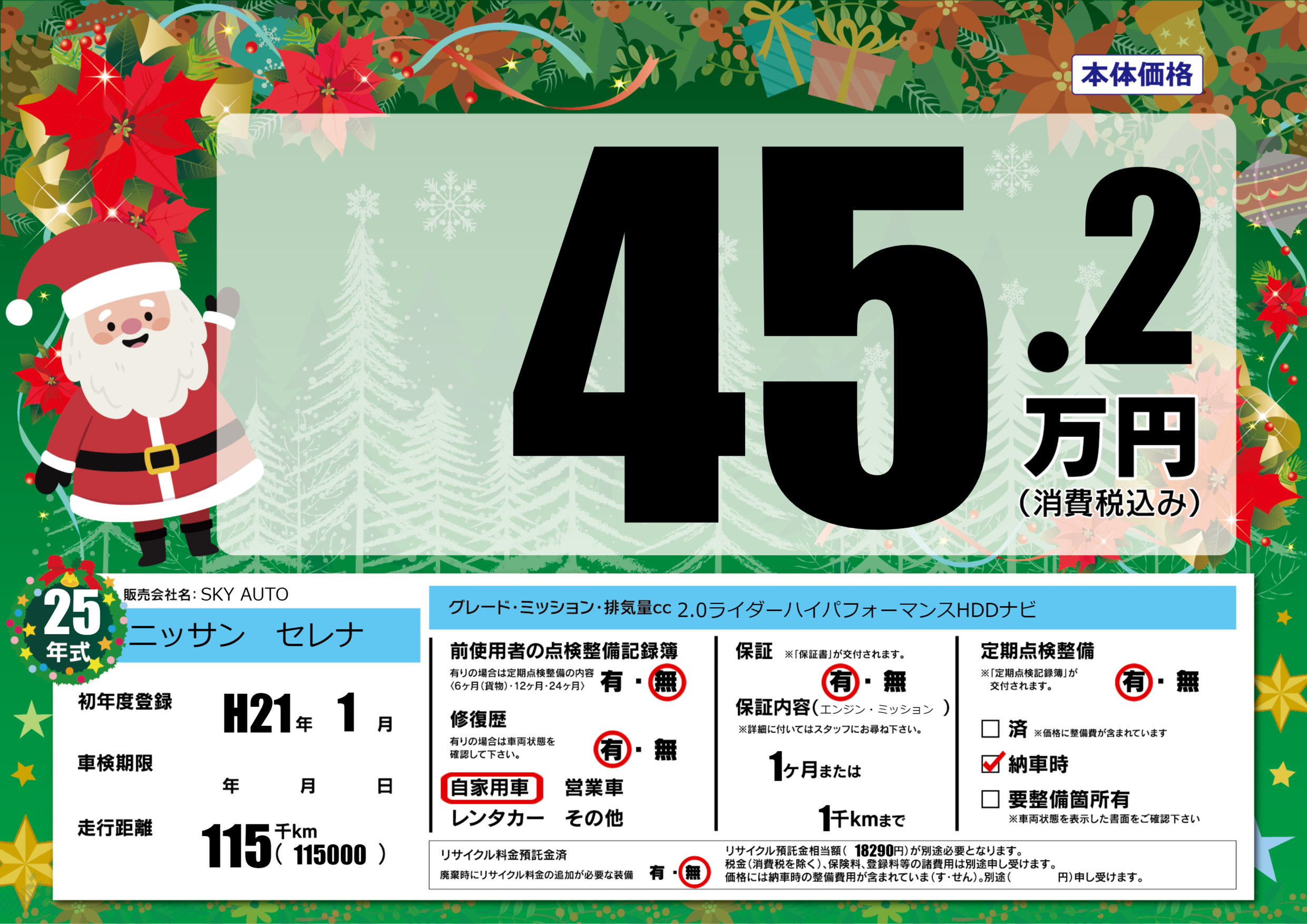 | 車名 | ニッサン セレナ | グレード ミッション 排気量 |