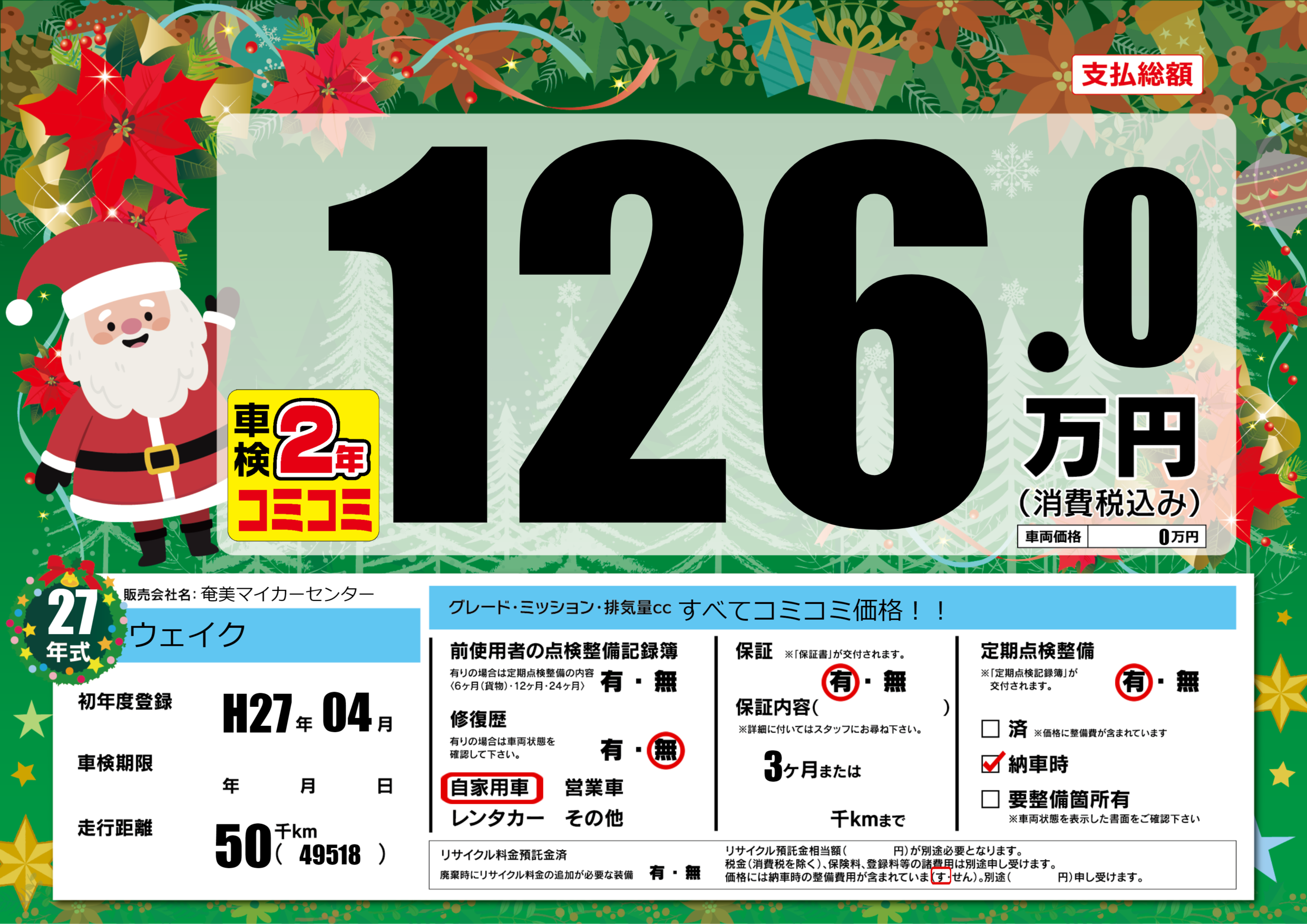 | 走行キロ | 5万km | 初年度登録 | H27年04月 |