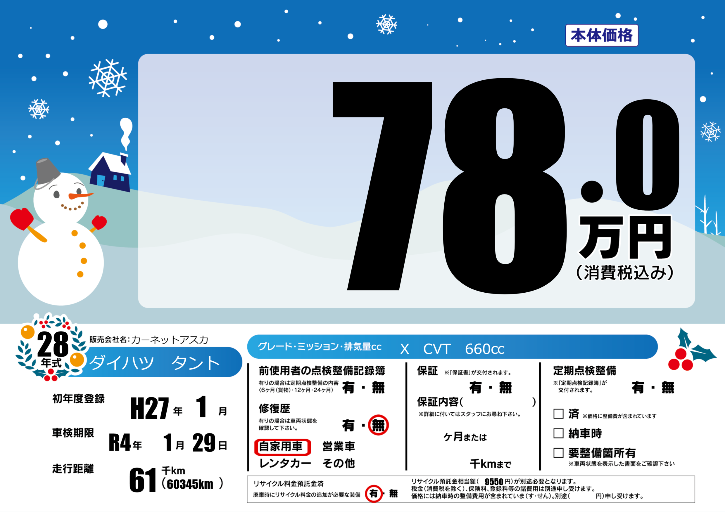 | 初年度登録 | H27年1月 | ||