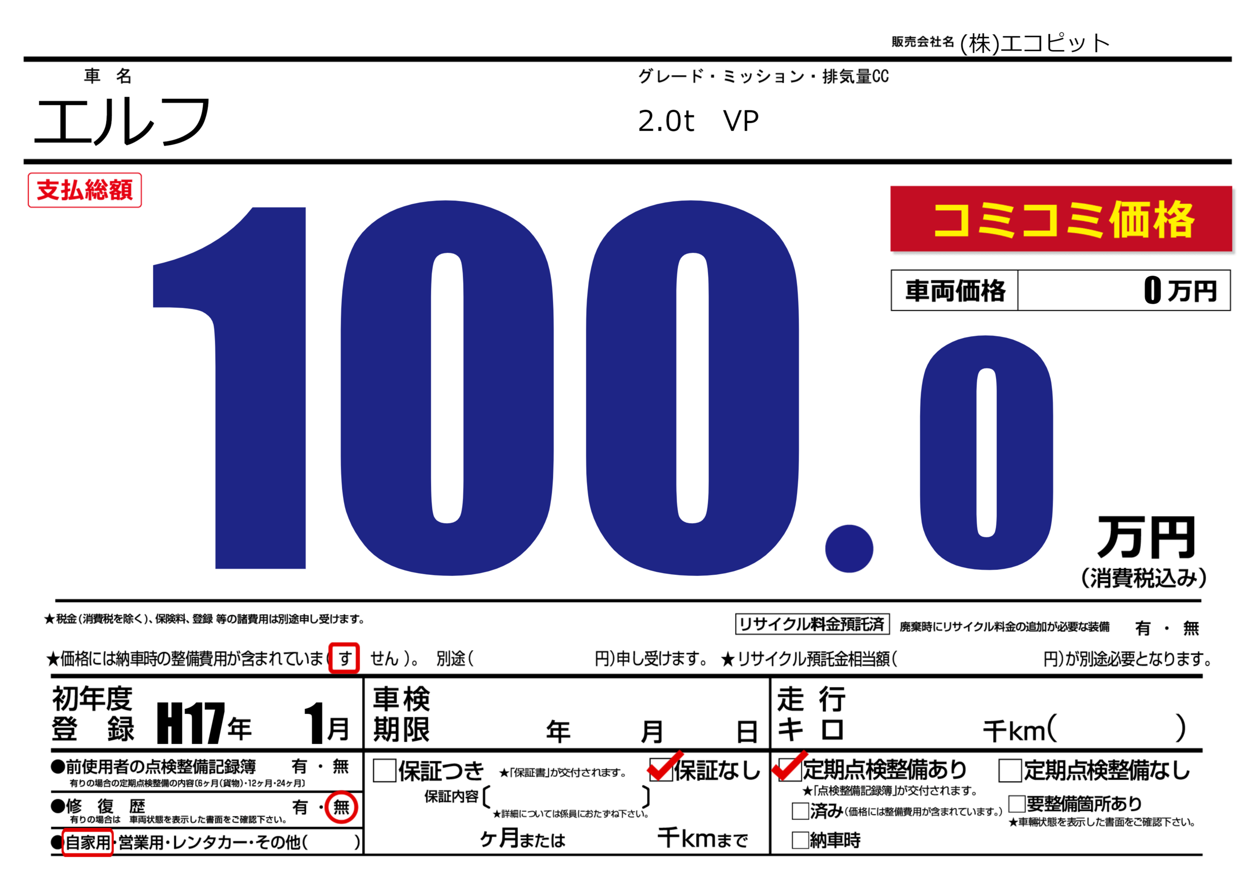 定期点検整備 | 定期点検整備あり |