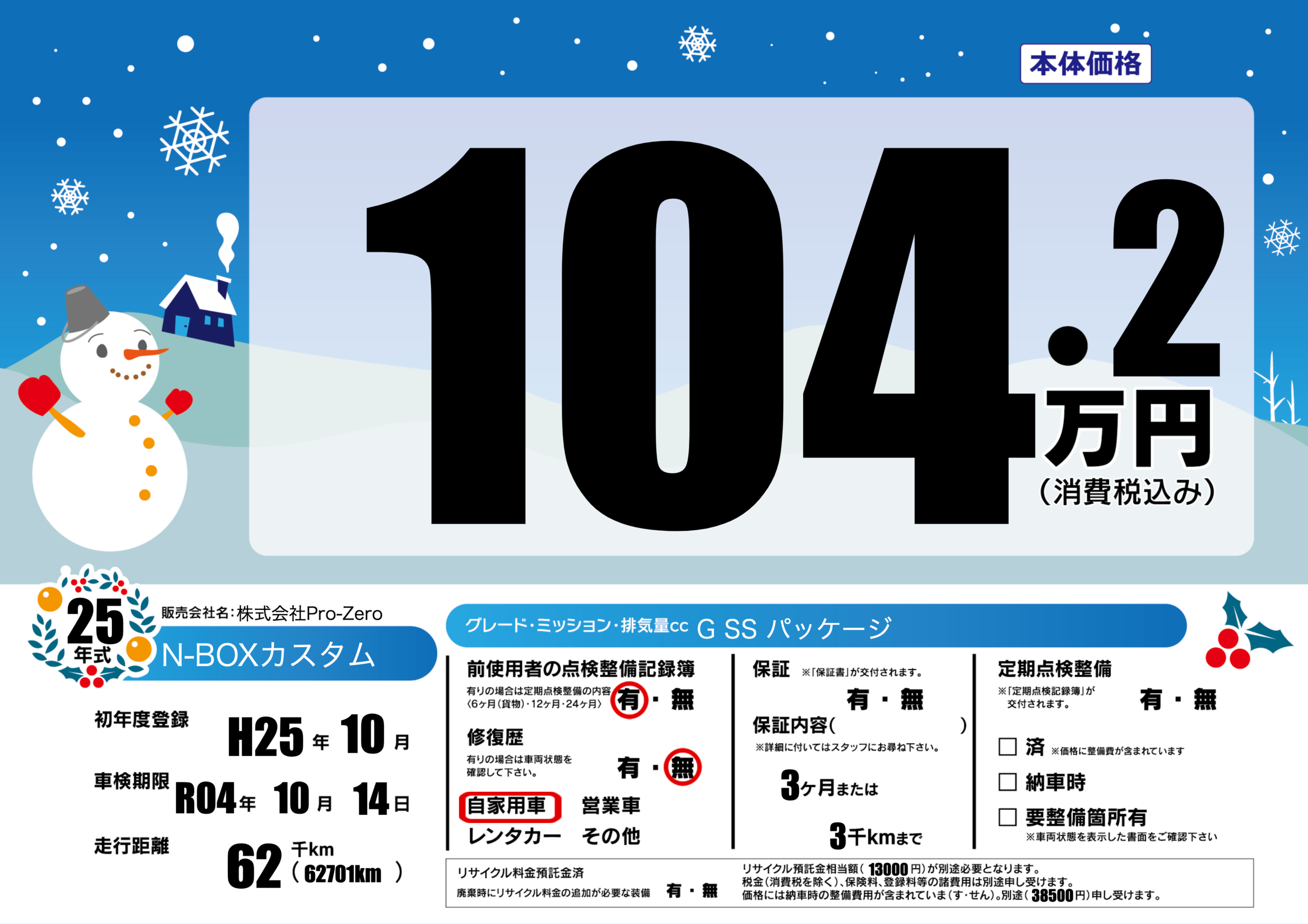 | 走行キロ | 6.2万km | 初年度登録 | H25年10月 |