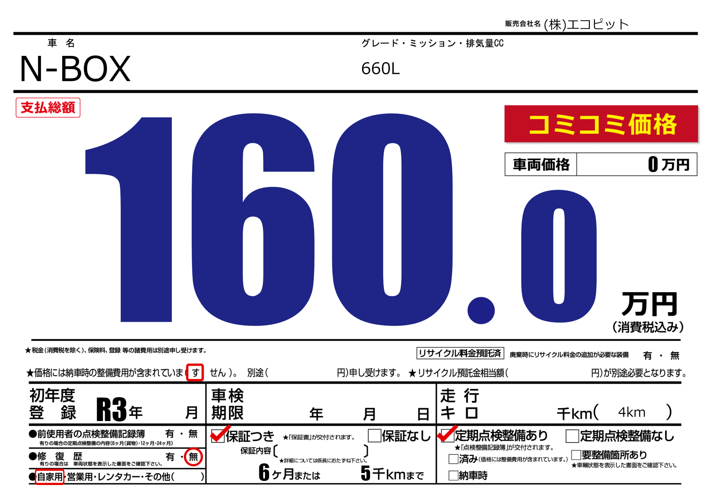 | 車名 | N-BOX | グレード ミッション 排気量 |