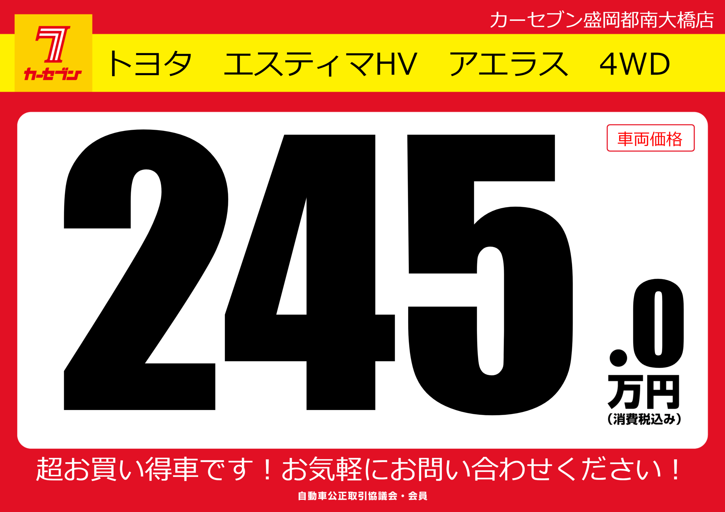 | 車名 | トヨタ エスティマHV アエラス 4WD | グレード ミッション 排気量 |
