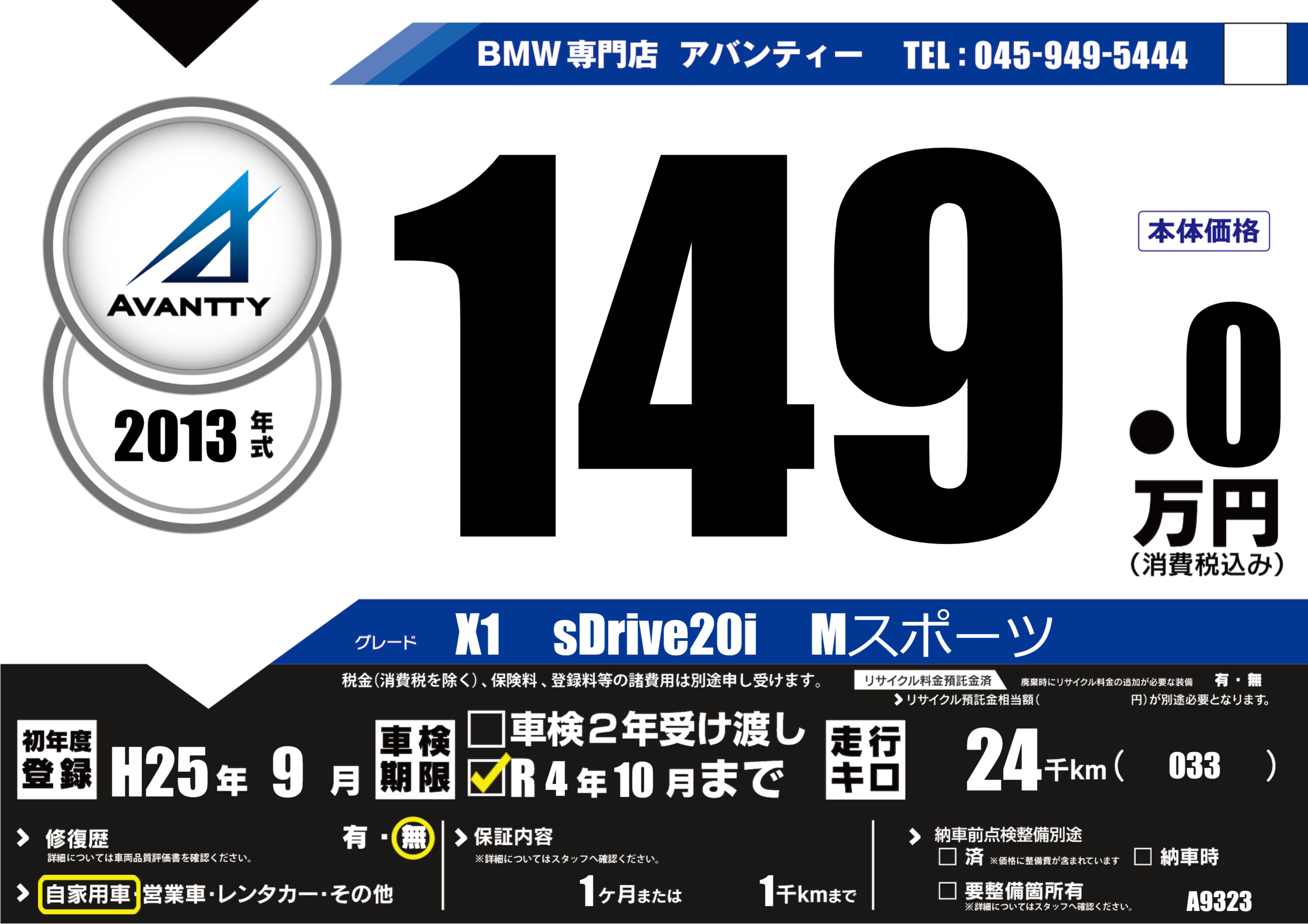 | 走行キロ | 2.4万km | 初年度登録 | H25年9月 |