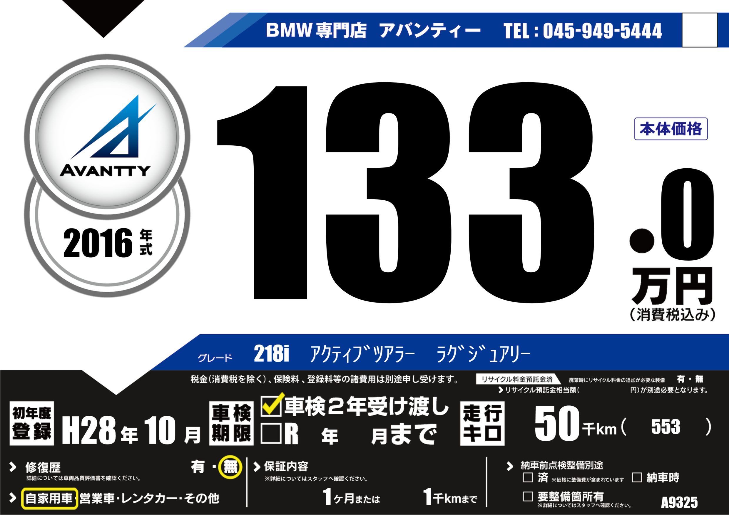 | 走行キロ | 5万km | 初年度登録 | H28年10月 |