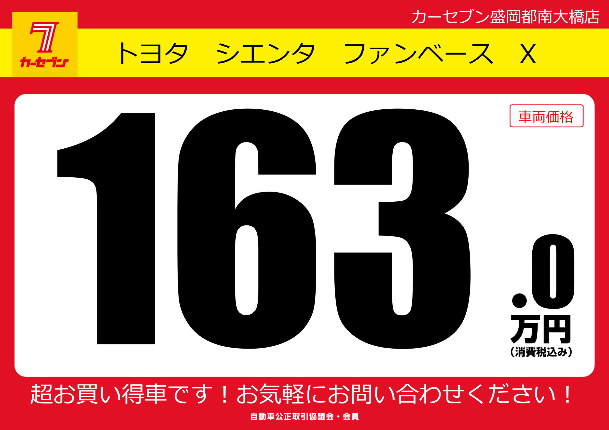 | 車名 | トヨタ シエンタ ファンベース X | グレード ミッション 排気量 |
