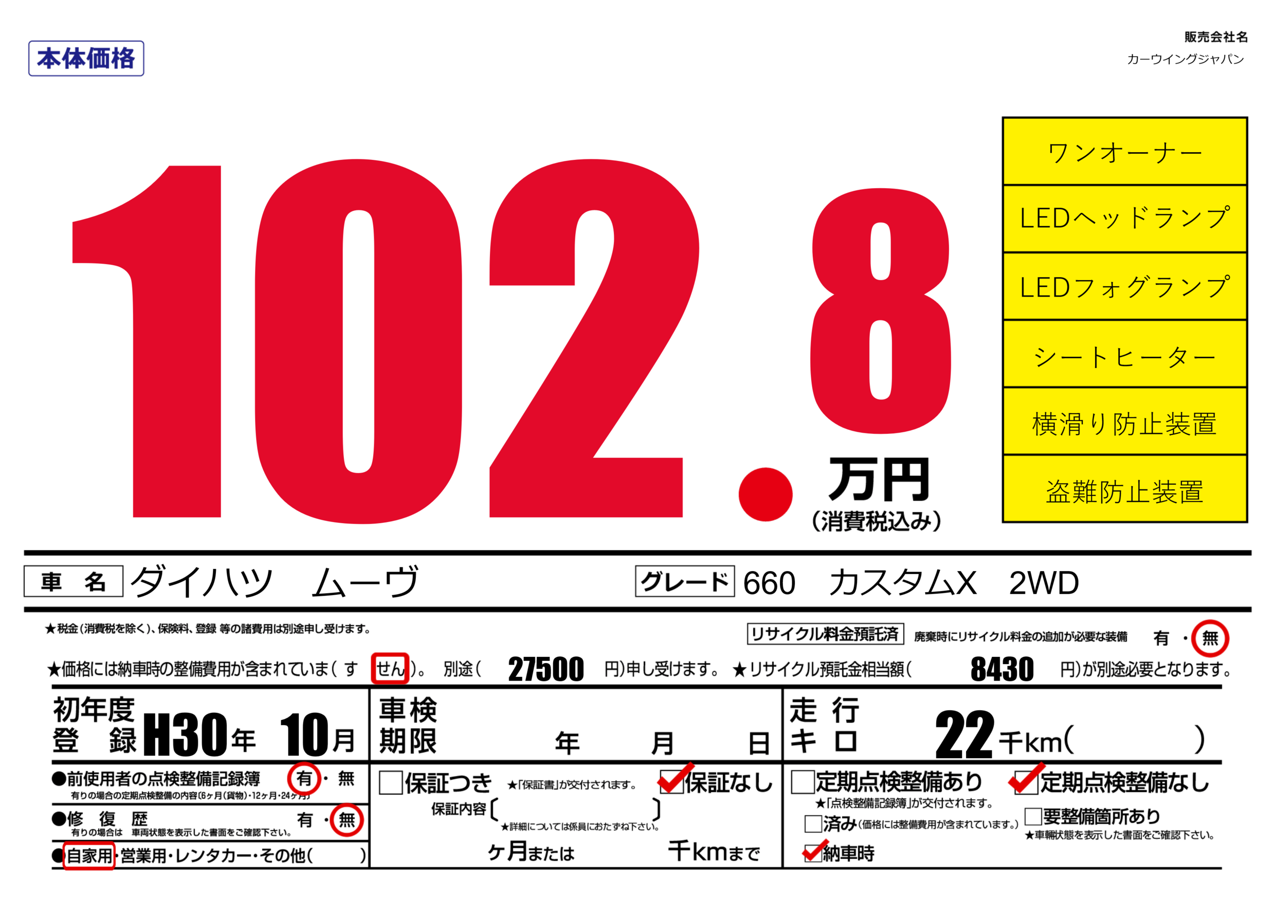 | 定期点検整備 | 定期点検整備なし 納車時あり | ||