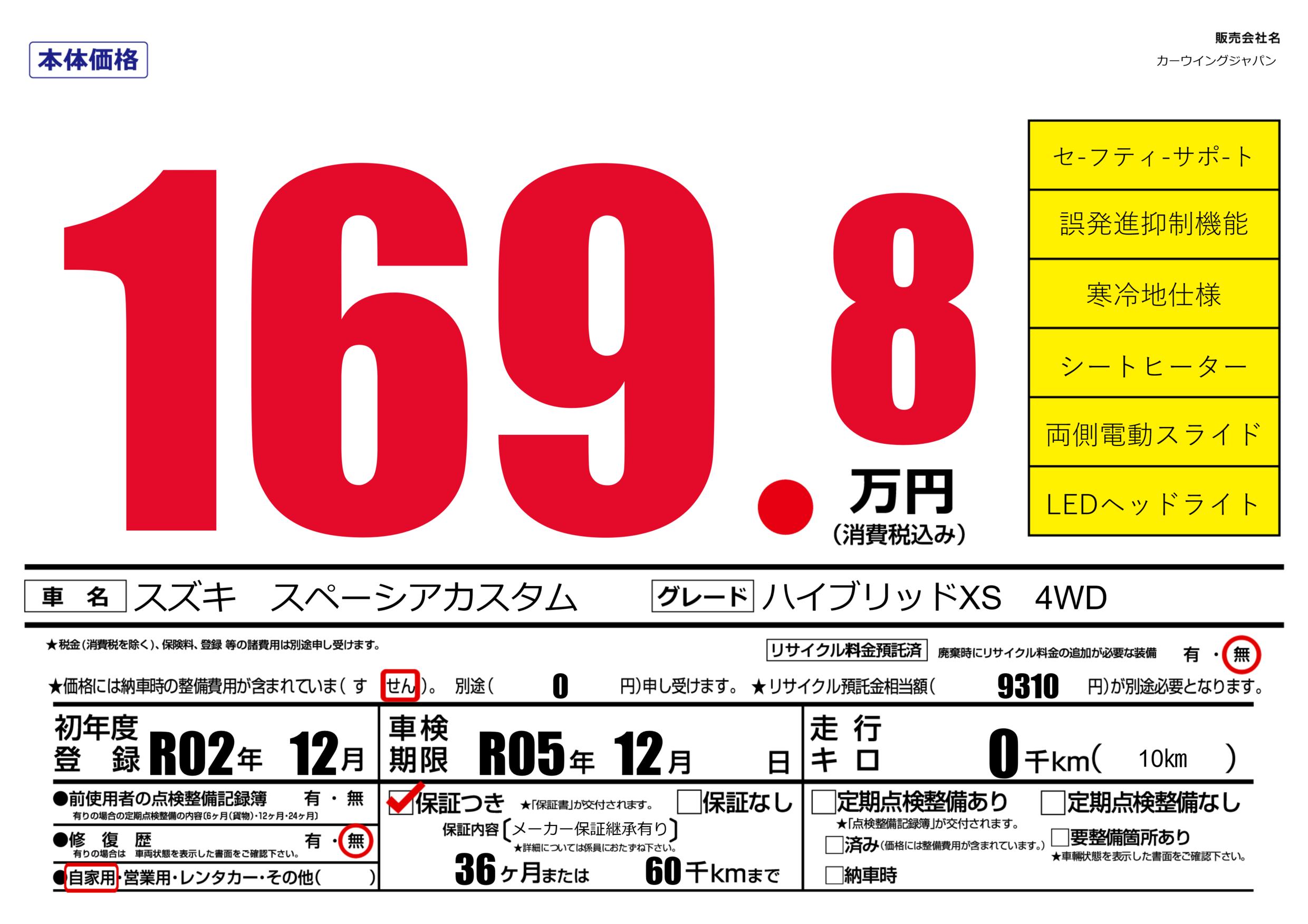 | 走行キロ | - | 初年度登録 | R02年12月 |
