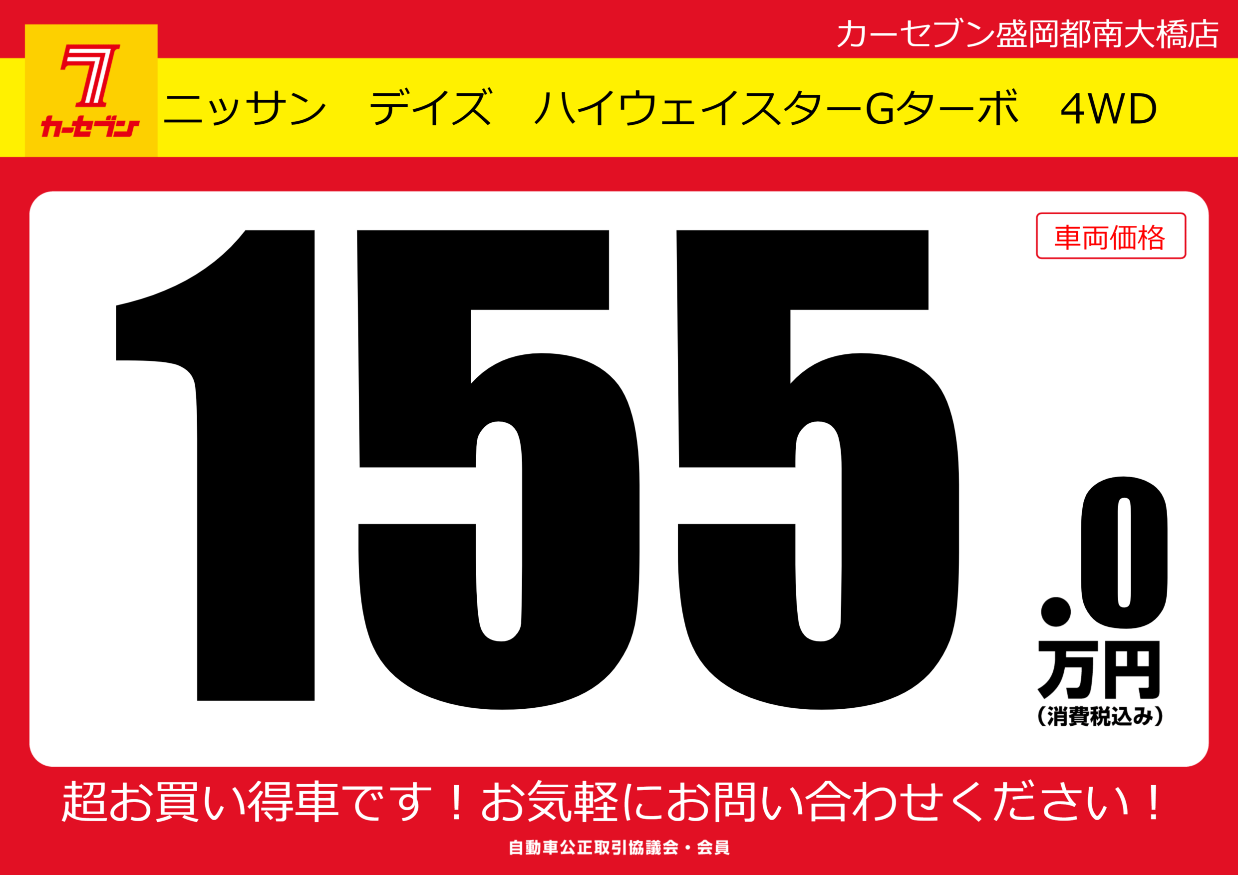 | 車名 | ニッサン デイズ ハイウェイスターGターボ 4WD | グレード ミッション 排気量 |