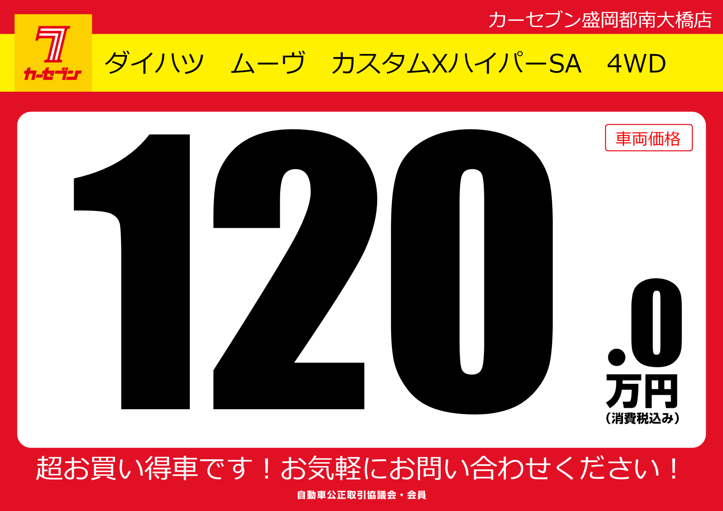 | 車名 | ダイハツ ムーヴ カスタムXハイパーSA 4WD | グレード ミッション 排気量 |