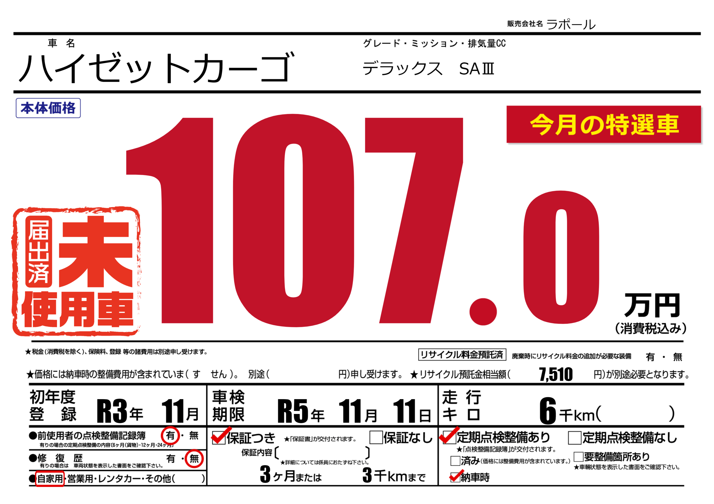 株式会社ラポール 軽バンマーケットの展示車