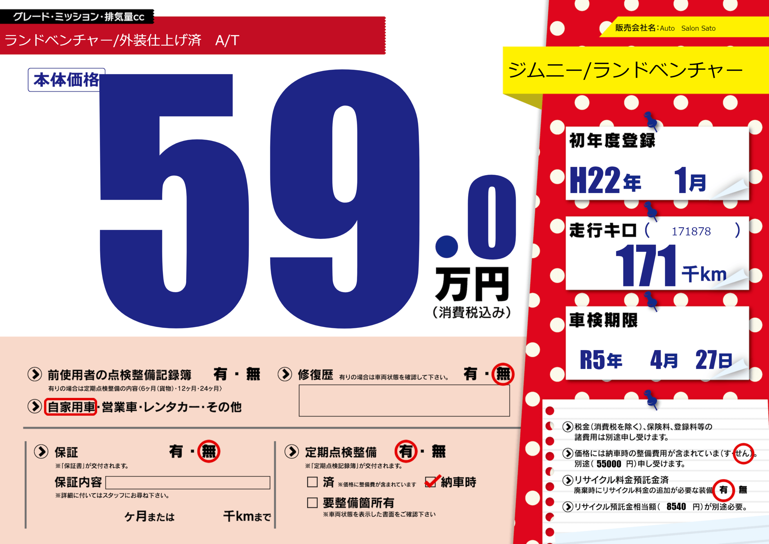 車検制限 | R5年4月27月 |