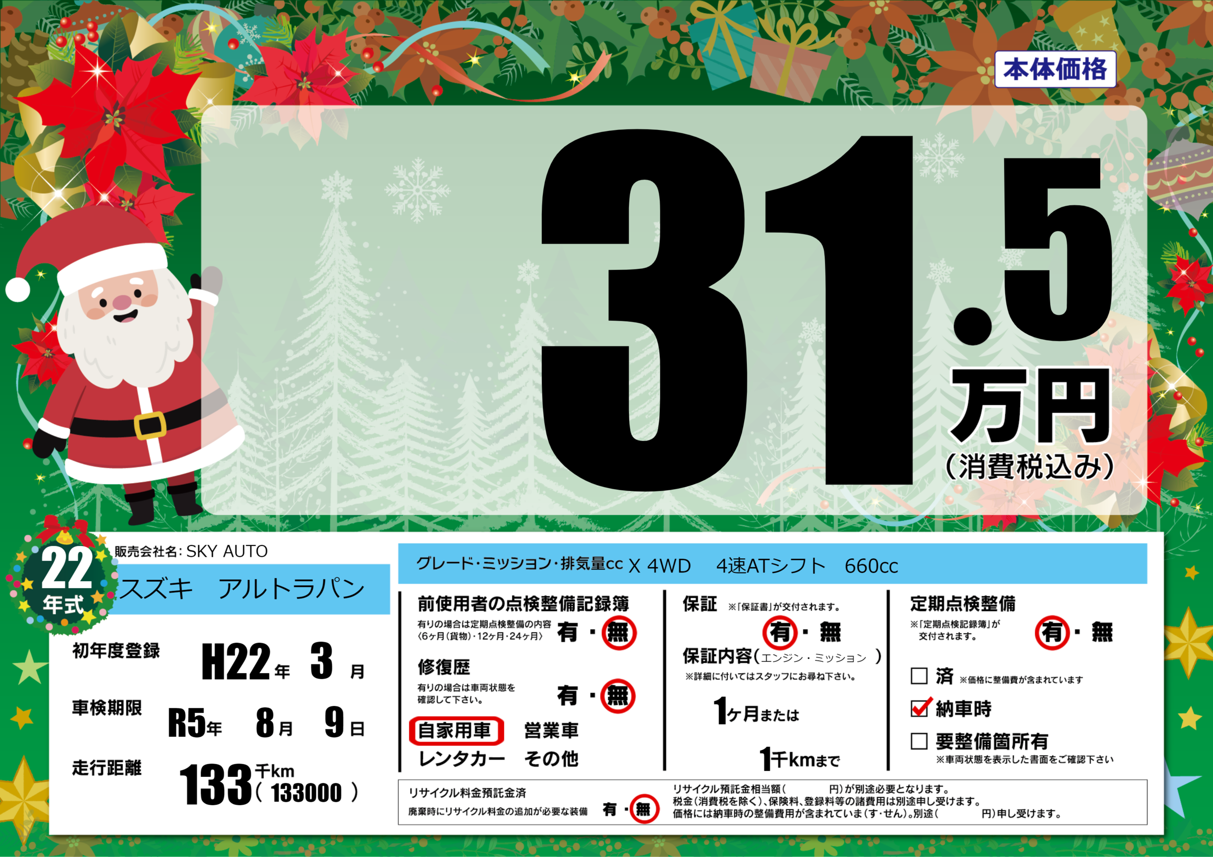 なし | 車検制限 | R5年8月9月 |