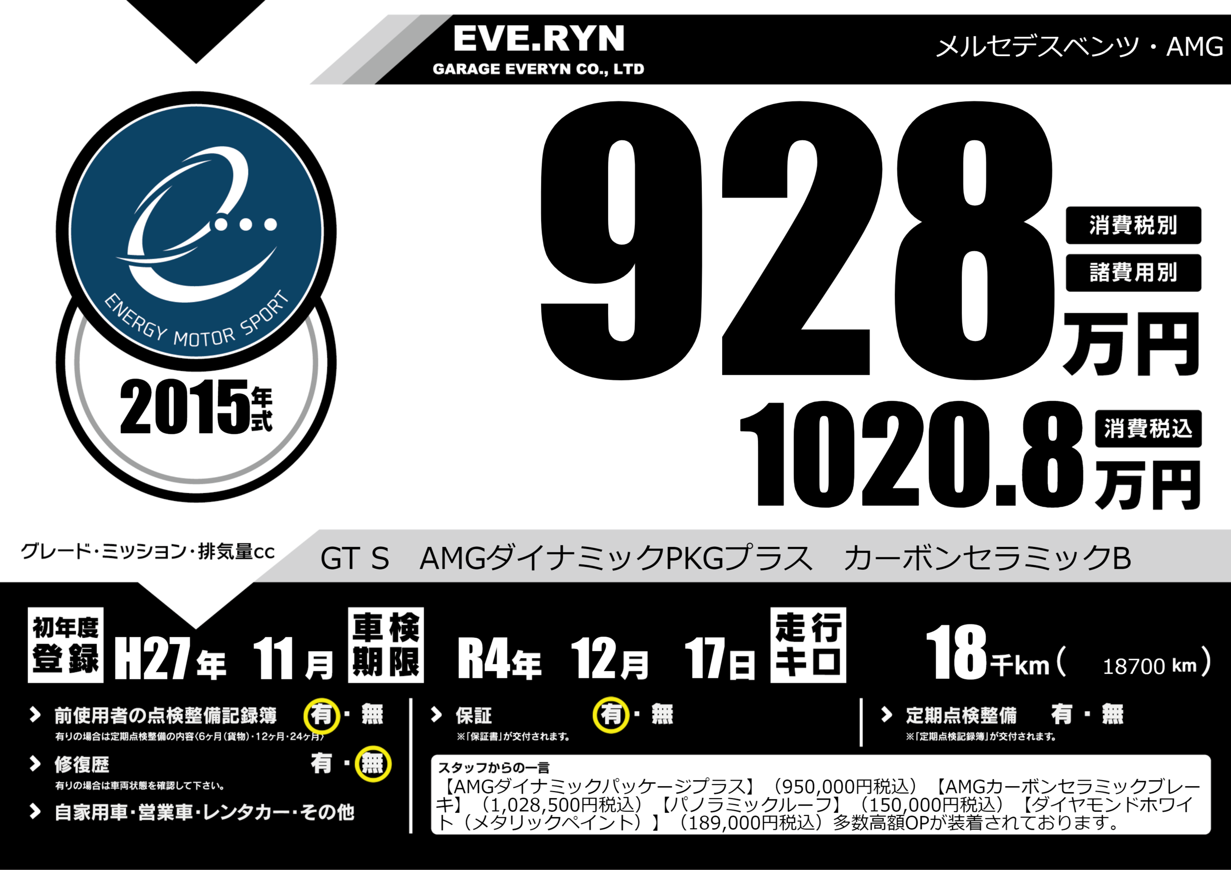 GT S AMGダイナミックPKGプラス カーボンセラミックB |