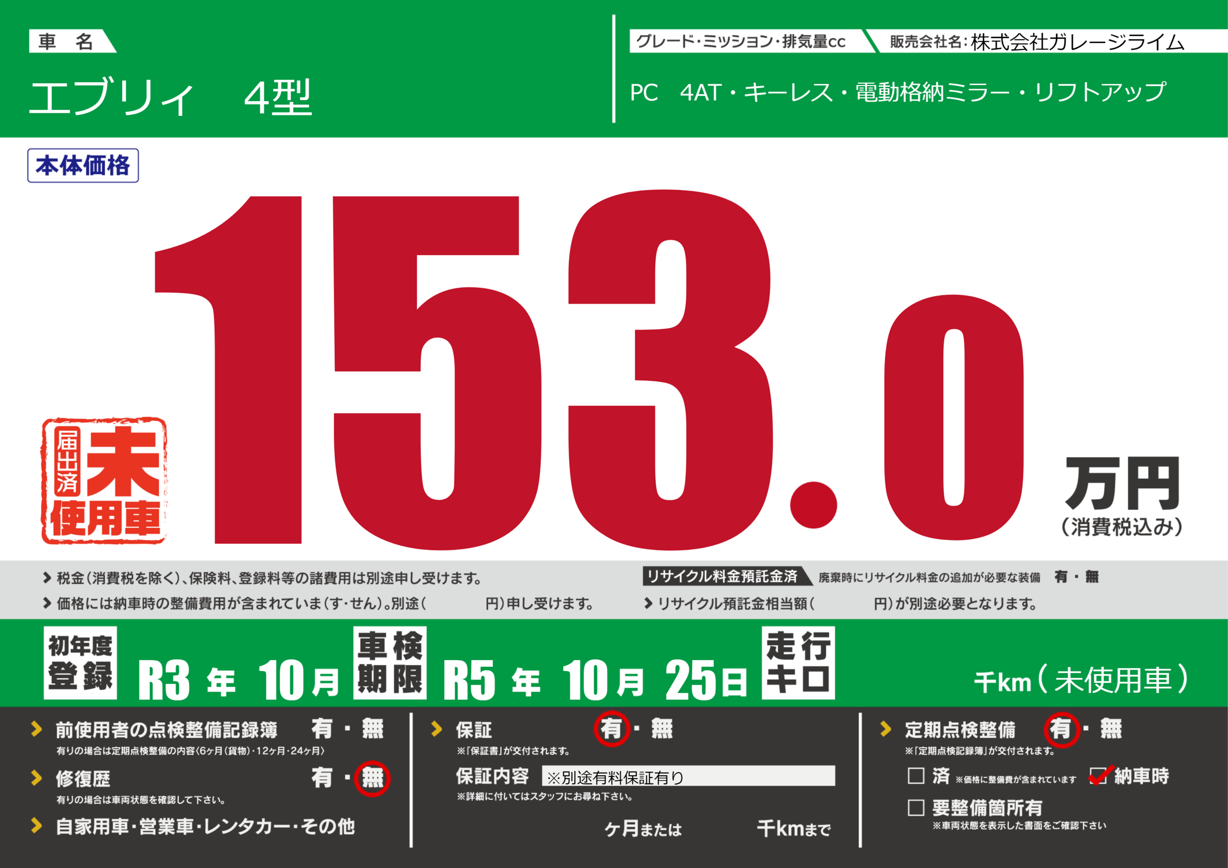 なし | 車検制限 | R5年10月25月 |