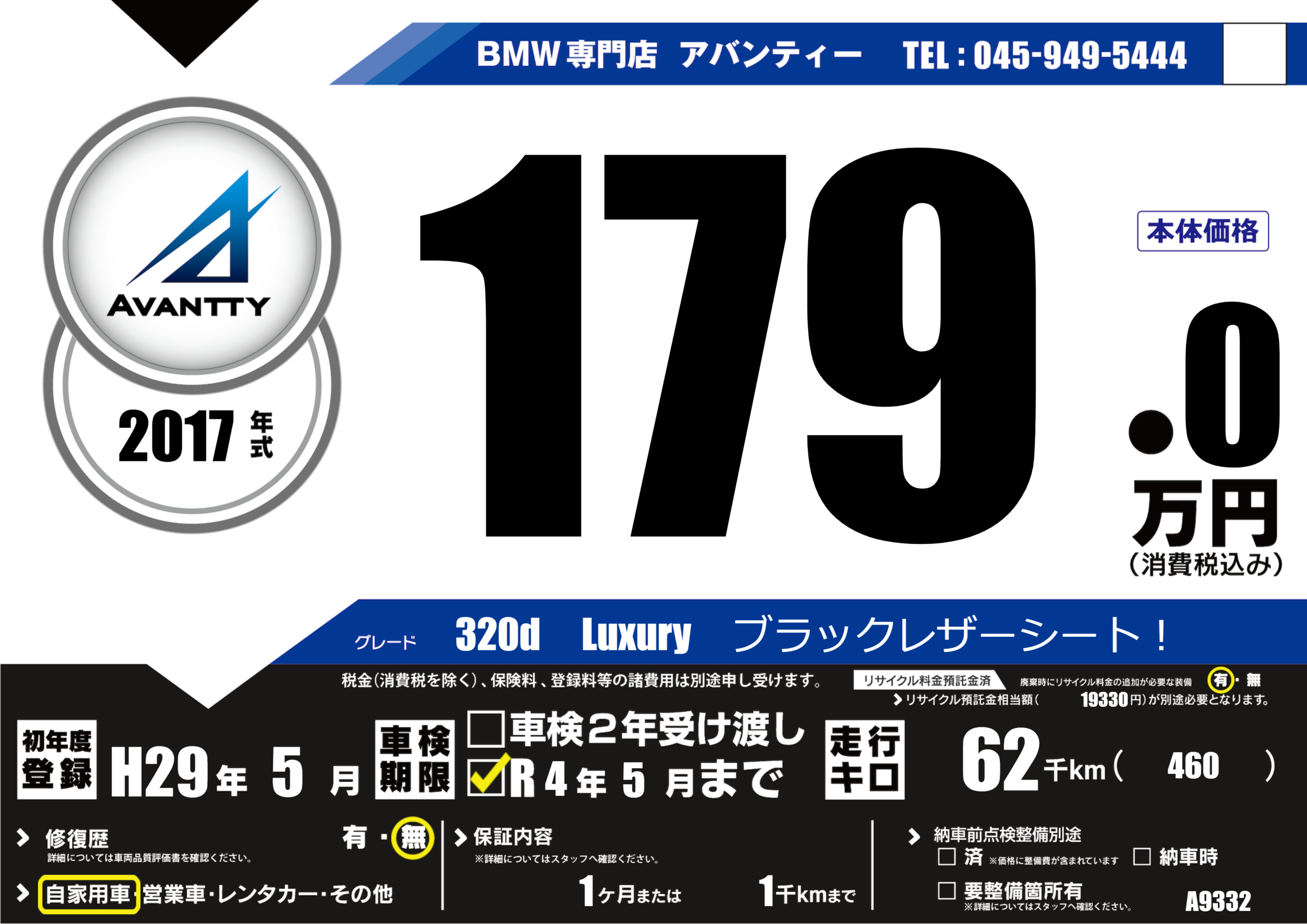 | 走行キロ | 6.2万km | 初年度登録 | H29年5月 |