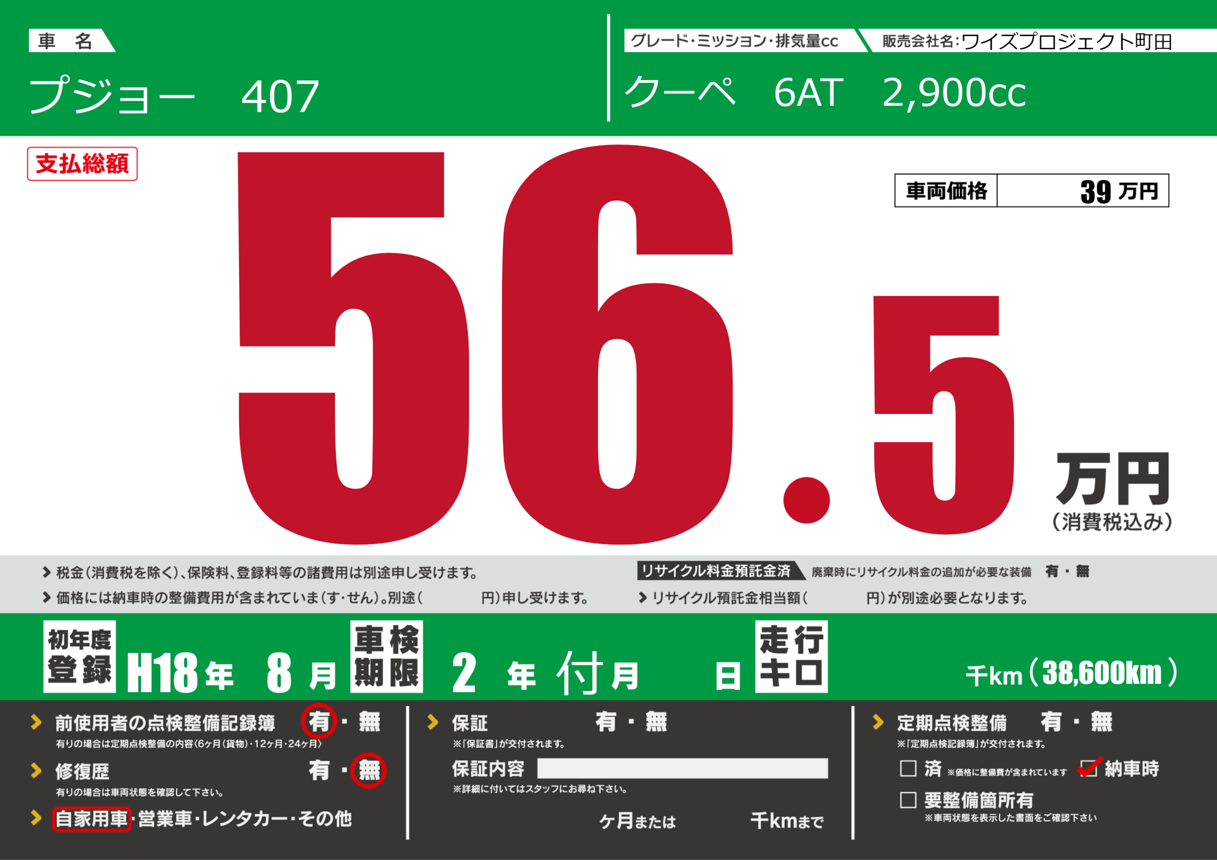 定期点検整備 | 納車時あり |