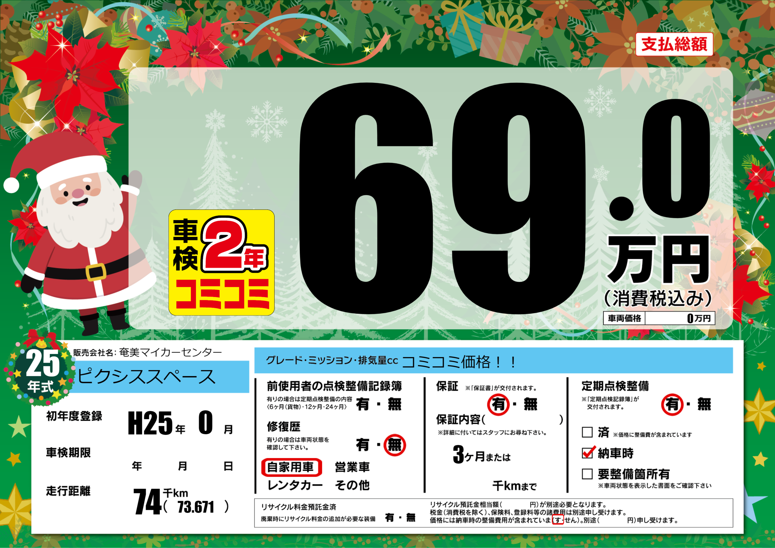 | 走行キロ | 7.4万km | 初年度登録 | H25年0月 |