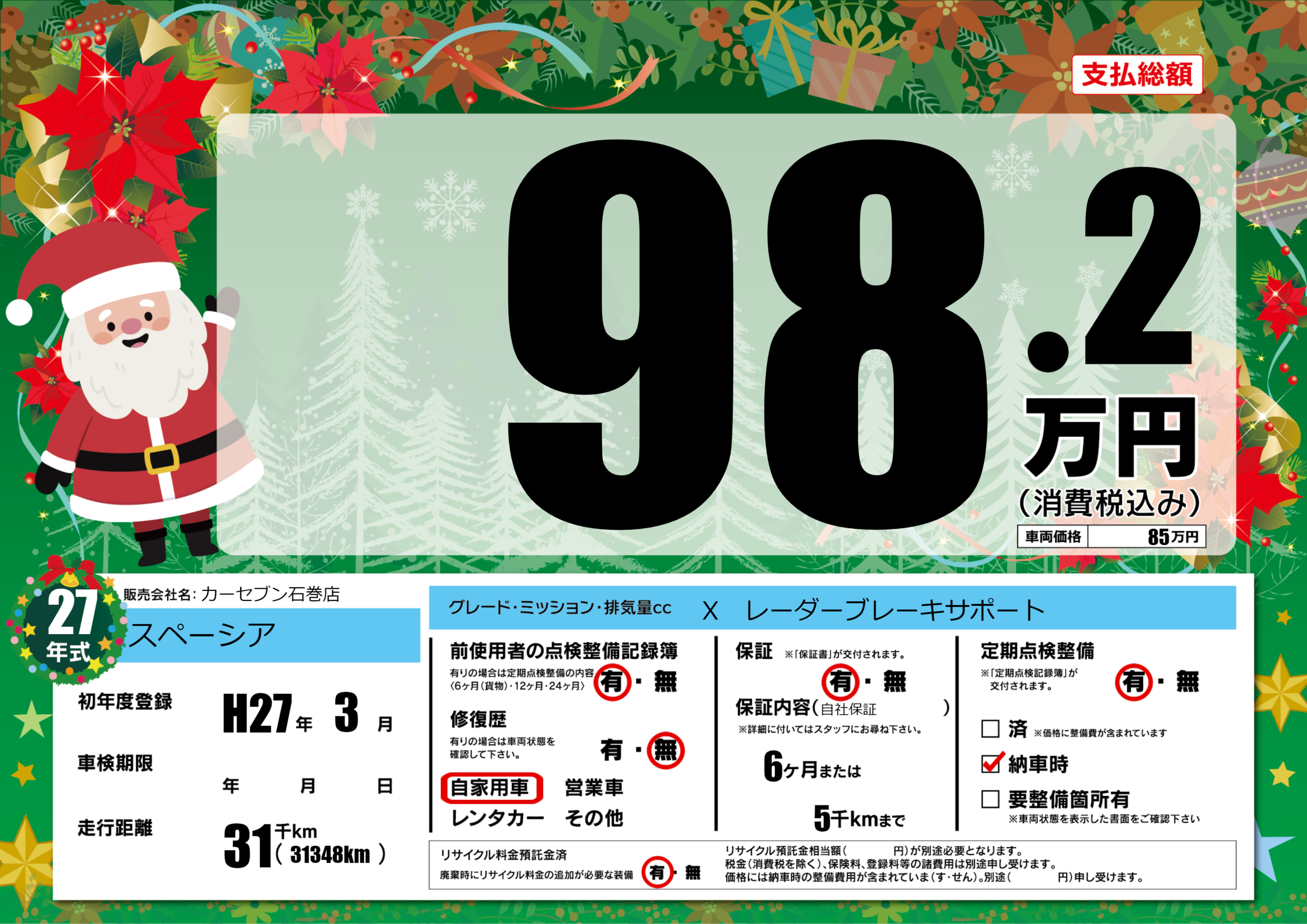 | 定期点検整備 | 定期点検整備あり 納車時あり | ||