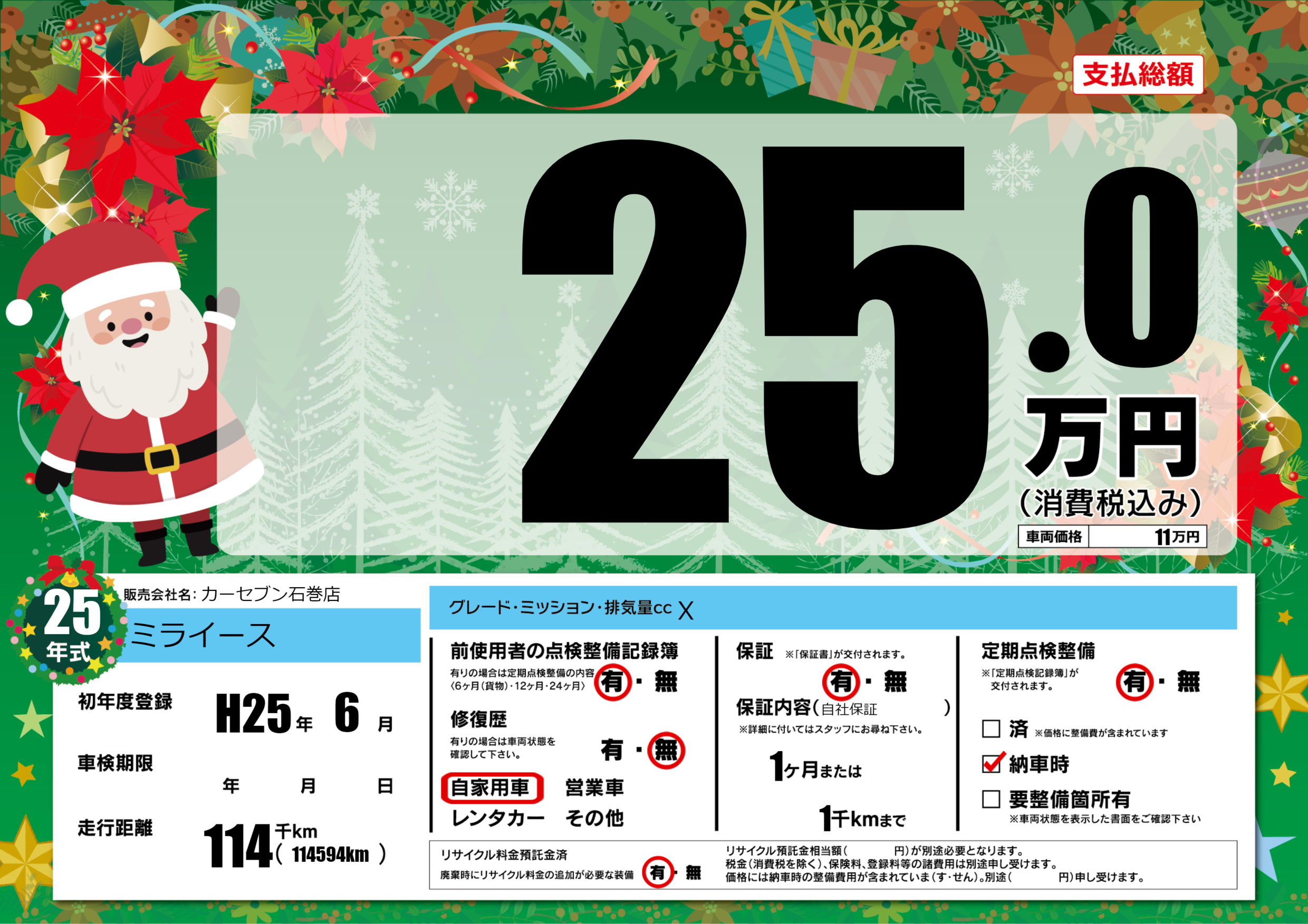 | 走行キロ | 11.4万km | 初年度登録 | H25年6月 |