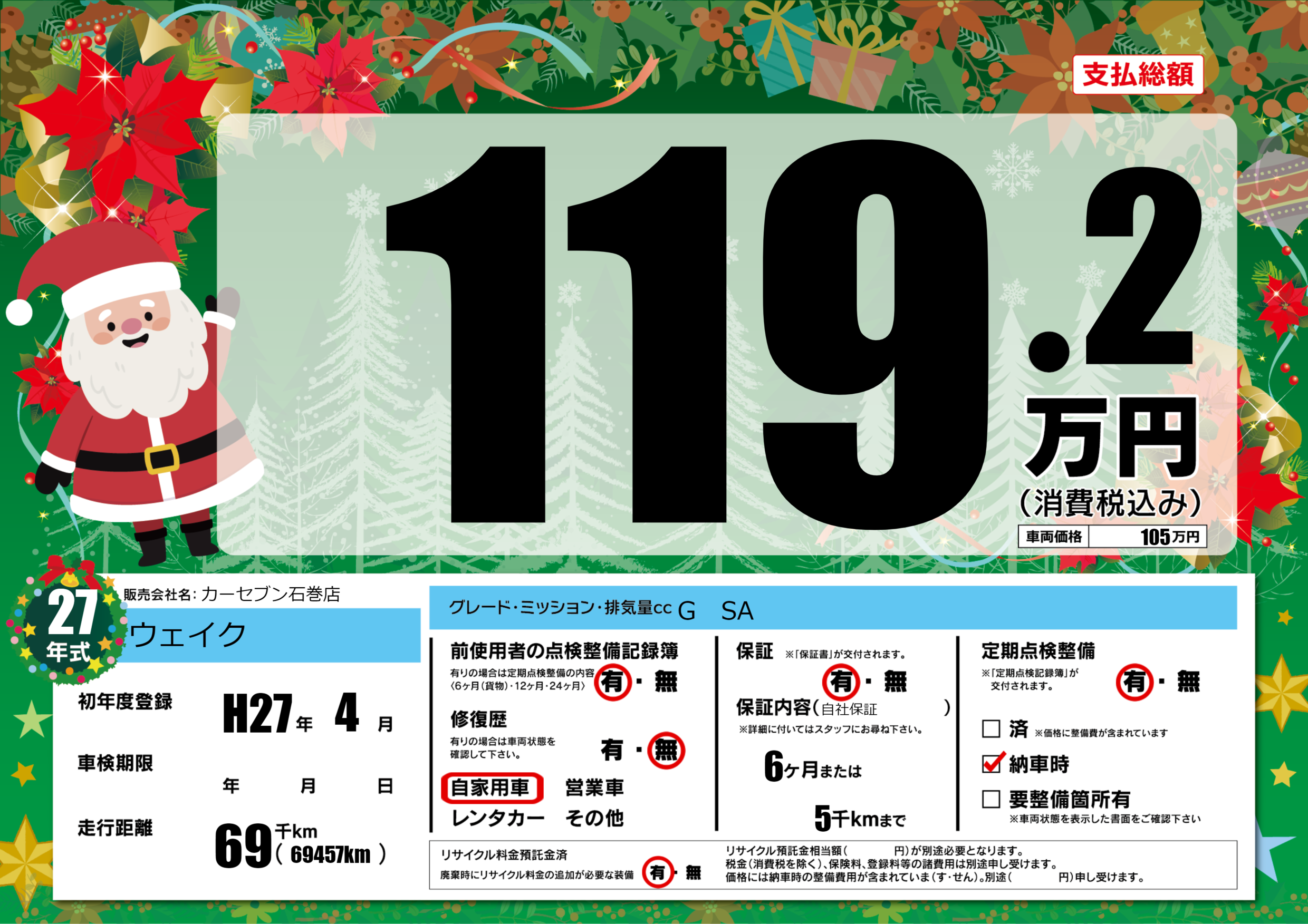 定期点検整備 定期点検整備あり 納車時あり