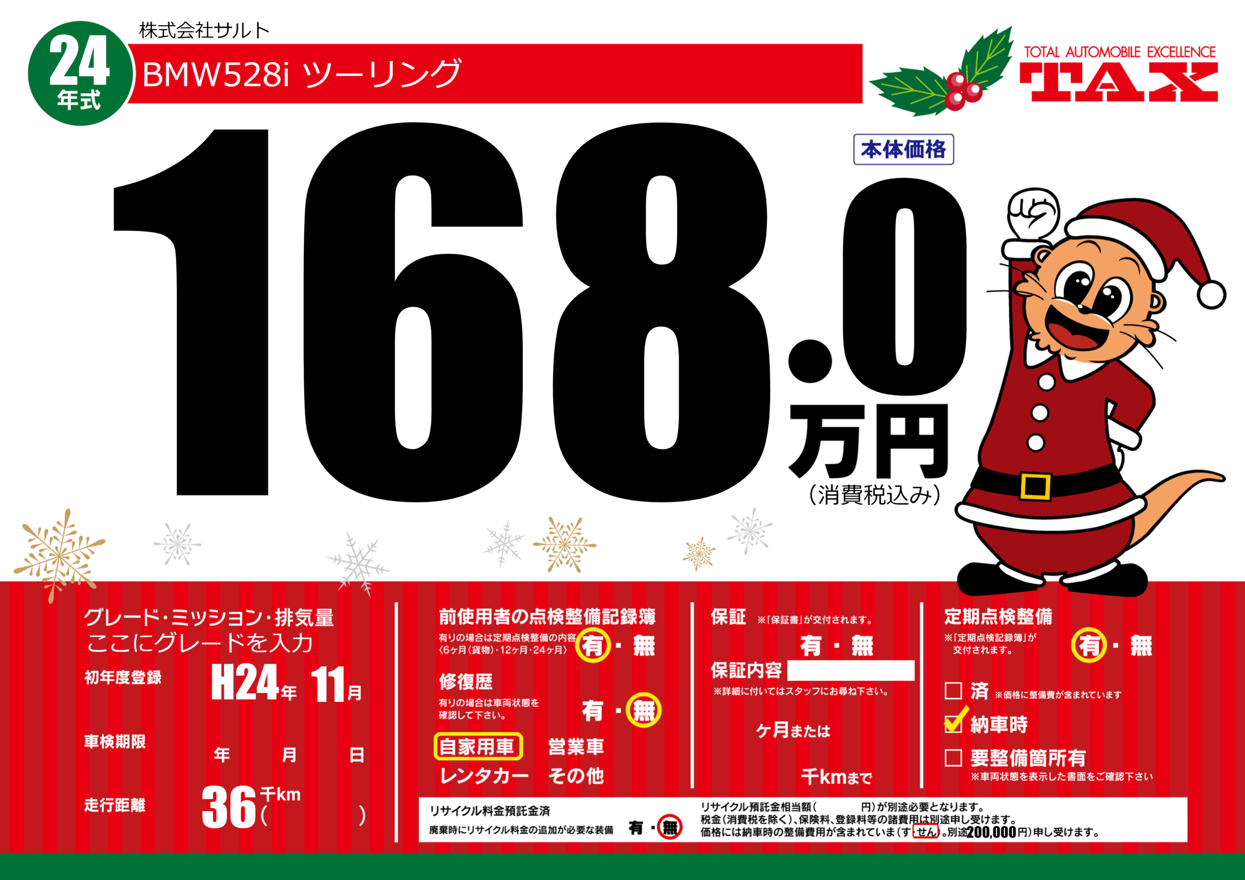 | 車名 | BMW528i ツーリング | グレード ミッション 排気量 |