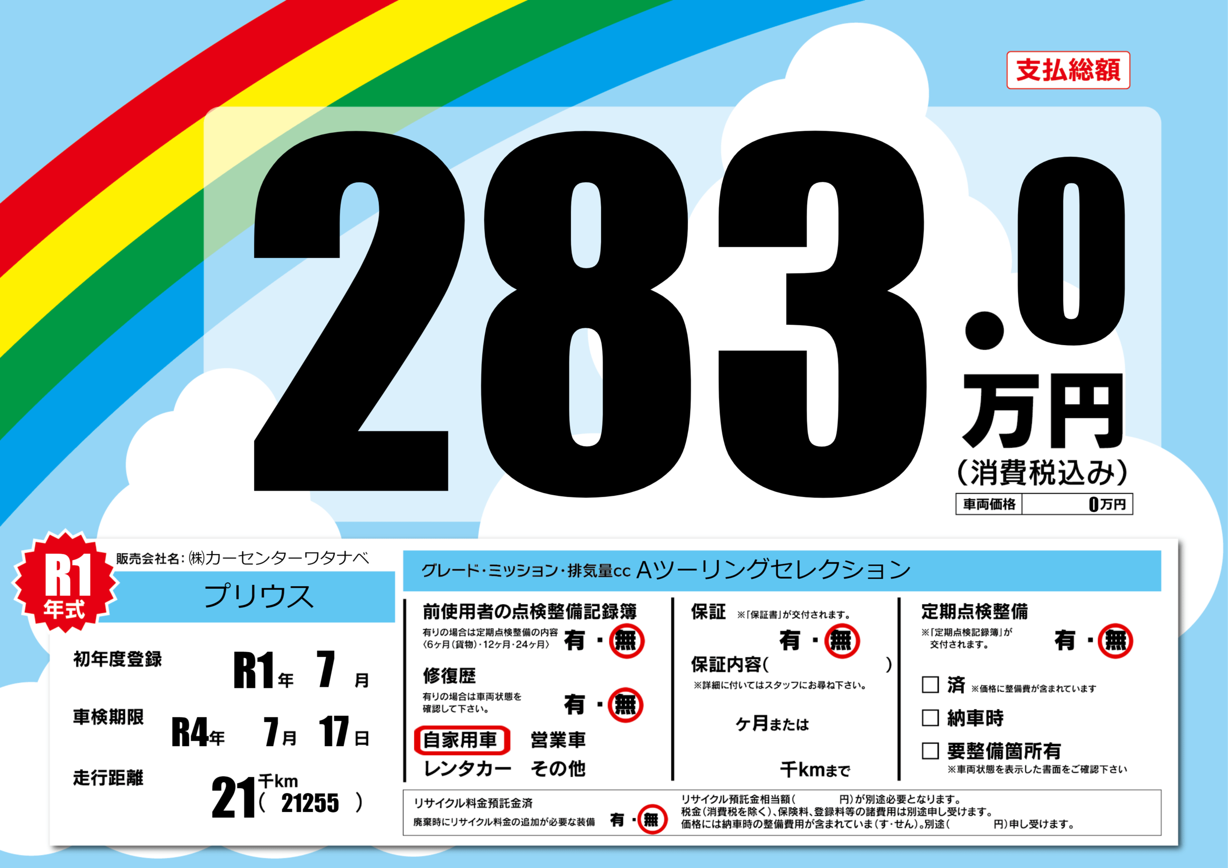 | 定期点検整備 | 定期点検整備なし | ||