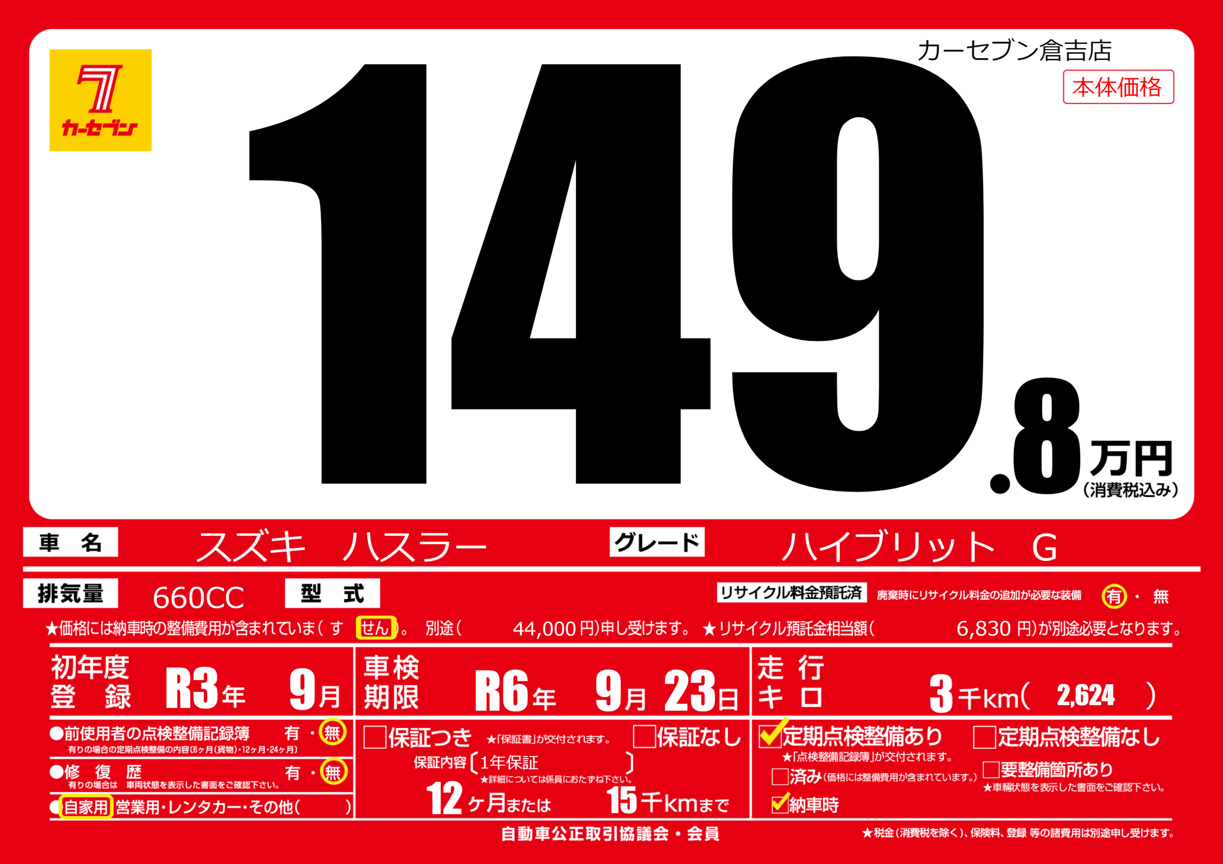 車検制限 | R6年9月23月 |